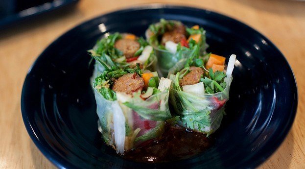 Northern Thai Sausage (Sai Oua) in Rice roll