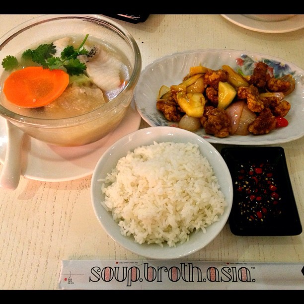 This branch is different with other branch as it offer noodles and burgers. I like to visit this place as it offer more food choices. They stated the calories in each soup type for weight management conscious. Previously, they have different ordering counter and you might confuse on the first visit.Currently they reconstructed their ordering system which everyone can place their order in the cashier and just seat to wait for the order. It made the way easier and convenient.The mushroom soup was generous in ingredients as you can have many kind of mushroom in bites. The tuna salad and ham sandwich came with the super value set order. The salad was generous in ingredients too.Roasted pumpkin soup has the lowest calories content. I love this soup the most as I love pumpkin all the way. With almond flake added in, the flavor is better with chunky bites in between. The Tom yum noodle is the recommendation dish in the menu. The soup was ok and this set came only with prawn which I think the price is not worthy as this is the most expensive in the menu.Khao soi is a famous and authentic noodle of Chiangmai Thailand. I was craving for thai food after coming back from Thailand so I order this which came with a big chicken drumstick. The taste is quite different from the one I ate in Chiangmai but it enough to satisfy my craving.The korean ramen was passable.Recommendation: pumpkin soup, chef monthly special…查看更多