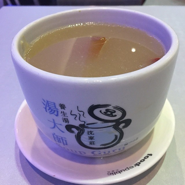 The most comforting soups are cooked at home especially by mum, decent and humble. Catching up with hectic lifestyle, I hardly find such lovely soup until I tried this stall. Managed by Food Republic, Soup Guru was the hit choice in bustling city. Offering a wide range of homemade soups, they promised the best soup always. Self-service basis, staff was friendly and speedy to serve us.Large bones were boiled in a huge pot for at least few hours, extracting the maximum flavour into it. Very traditional way of cooking, soups were continually boiled with constant fire to hold the original taste. I opted for herbal soup, hearty warm while it served. Ribs were not too hard or overcooked at the same time brought the sweetness of the soup, taste of soup was finely warm. Old Cucumber played its part to balance up soup, texture was soft while melting at tongue. No MSG guaranteed, soup can be refilled without charging additional cost. I ordered along fried Tau Foo and made it into a filling set. Price wise, it was completely reasonable to have the authentic soup. Just under $10, you may enjoy a homely meal. Welcome to try it out.…查看更多
