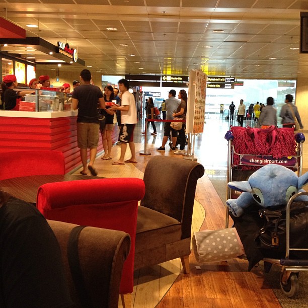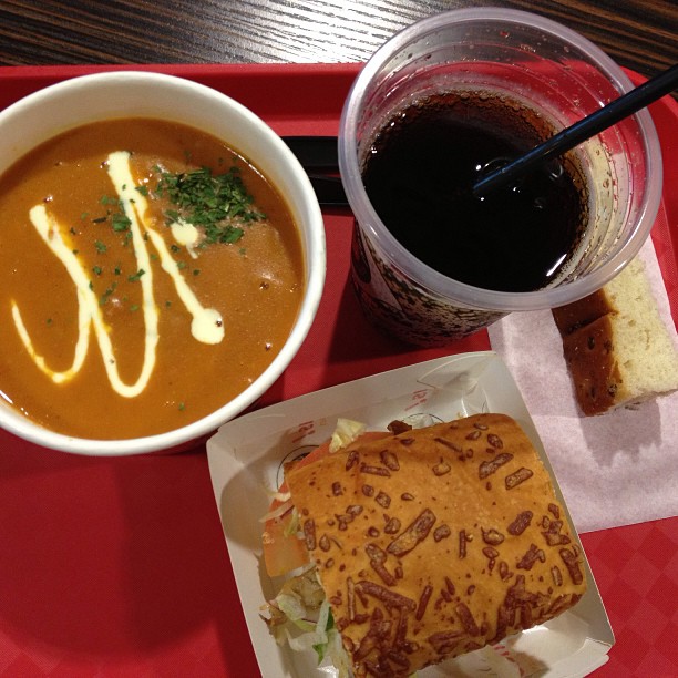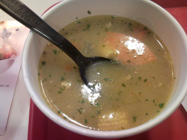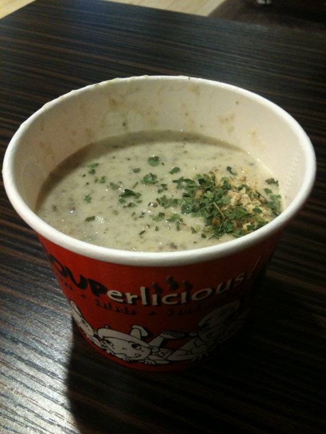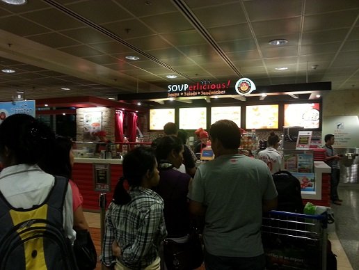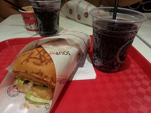 My friend recommended this restaurant for our dinner before we took our flight to Jakarta.All of meal combo sets at Souperlicious @ S$10.90 each.You can choose the type of sandwich, selected item for soup or side course. It is a self-service basis where customers will have to order and pay at the same time at the counter.I had Tokyo Lover which consists of lightly toasted bread with juicy teriyaki chicken, melted cheese, smothered with bonito flakes and seaweed drizzled with japanese mayonnaise and teriyaki sauce. The menu stated 'Must Try!' so I decided to give it a try. The toasted bread is soft and I can easily savor the ingredients stuffed in between the bread.I chose Romaine Caesar as side course. The salad consists fresh crisp lettuces, cherry tomatoes, hardboiled egg and croutons in caesar dressing, sprinkled with parmesan cheese. The parmesan cheese portion is quite generous sprinkled on top of the fresh green vegetables. The cheese is quite rich and it covers the overall salad ingredients taste.We were given an empty cup to fill in our drink. The drink dispenser were placed at another corner for customers to fill in their drink by themselves. So, basically no much comment on their services as it is self-service cafe. The staff who takes order also doesn't not provide smile on her face. I felt that she is a bit rude as the customers are trying to understand the menu before ordering, she seems to reply in an impatient tone.However, if you are opting for a quick bite while waiting or rushing for flights, you might want to consider to try it.…查看更多