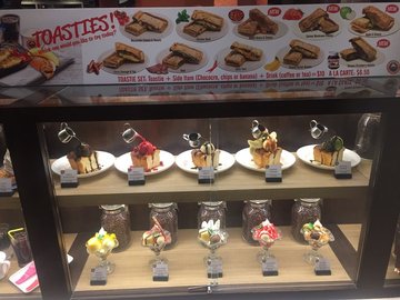 The husband and I headed to Marina Square for Lady M’s mille crepes but didn’t expect it to be closed that day. Since we already had lunch and was just looking for desserts, we settled for St. Marc Cafe which I recalled was featured in the local tv food programme, Snack Attack <<超级小吃赞>> a long while back and its croissants drew a lot of raving reviews.Saint Marc Cafe is a Japanese chain that serves up freshly brewed coffee, daily baked breads, ice creams, parfaits and more. Its first cafe opened in Tokyo in 1998 and it has over 300 outlets in Japan now.Saint Marc Cafe is best known for its signature chococro (‘chocolate croissant’) which is made of the ‘best blend of Ghana Beans and finest Ecuador beans’ (dark chocolate) wrapped with a flaky and buttery croissant dough.When I took one bite of the original Chococro, I was expecting it to ooze chocolate custard but the ratio of filling to crust was just miserable. Even though the chocolate was supposedly made from the finest cacao beans, the taste was no where near finesse. I thought the chocolate tasted weak, like it had been diluted with too much of other ingredients so its consistency was quite thick. However, the croissant dough itself was really good. It was rich in butter flavour without being too greasy and it was light, flaky and airy inside. Definitely one of the best croissant doughs I’ve had in Singapore. Even though the Chococros were put out on bread shelves for self-service, they were warm and crispy.The Matcha Daifuku Chococro consisted of the original crispy croissant filled with matcha custard, chocolate, red bean and mochi (sticky rice cake). I actually preferred this to the chocolate one because I could taste the sweetness of the soft red beans, the bittersweet fragrance of the matcha and the chewiness of the mochi that gave different textures with each bite.If Saint Marc could come up with plain croissants without any filling, I’d probably get more so I could enjoy them with tea. The croissant dough was amazing but the fillings were truly forgettable.For full review and pictures, please go to http://www.springtomorrow.com/2014/03/02/saint-marc-cafe-marina-square/…查看更多