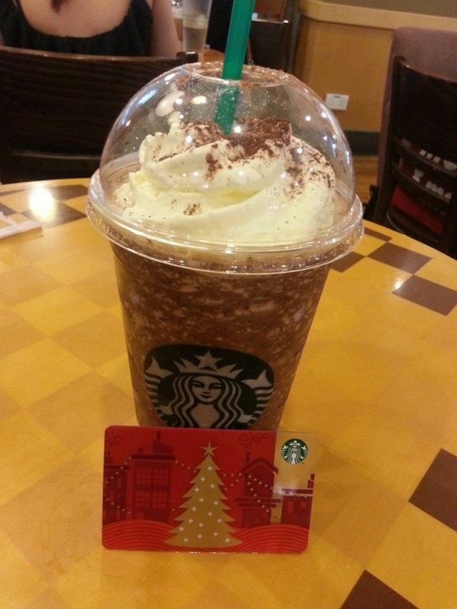 Had some time to while away and I had a free $10 Starbucks card, so I decided to pop by to get a drink.I'm not really a coffee drinker so I got the Green Tea Frappucino (Tall) $6.40, with whip cream. The drink was nice and the matcha taste was just right, sweetness was also okay for me which was good, as I don't have a sweet tooth. I took the bar seat which overlooked the lower floors of the mall. Nice place to just stone/people-watch or read a book