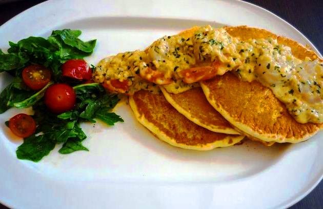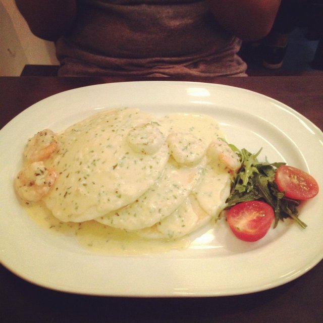 Love something savoury and lingers in your mouth? Garlic Buttered Prawns pancakes are just for you! The fragrance herby garlic butter sauce enhance the taste of the dish and you realized that you cannot stop just after the first mouth. The cherry tomato salad at the side helps to balance the diet, making one less sick after mouthful of buttery treat. Ohhyay!