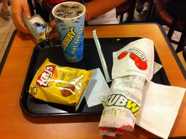 Before you get on a plane, if your digestive system is like mine, can't have any dangerous dairy products cereals or heavy fried foods or eggs. My option is always to dine at Subway because it's a lot healthier and the portion to price ratio is actually quite alright like the usual fast-food restaurant cost. The healthy turkey wrap, the chip snack and the soft drink (usually ice lemon tea for me for the morning flights.) Definitely a staple must if you practice the Jared Fogle diet!The ingredients are all fresh (from what I can taste) at Subway. I've eaten at many subway branches and the consistency of all flavors/freshness/standards are all there. (except occasionally encountering a service staff problem)…查看更多