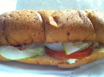 :)Today, we order the one foot longs Ham sandwiches and ask to cut into two pieces. With succulent slices of ham, you cannot beat this favorite. Especially it indicates that it contains less than 6 grams of fat.The classic style sliced ham with our choice of fresh 6 vegetables tomatoes, green peppers, onions, olives and pickles-jalapeno and the choice of 7 condiments, I pick Honey Mustard and Mayonnaise served on freshly choice of baked bread, I pick Italian. It is very nutrition and the children love this ham sandwiches very much. The price is $8.00 for a foot longs sandwiches.…查看更多