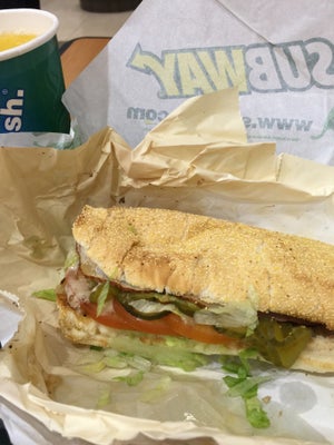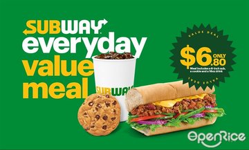 Subway has these daily specials which are good value, $5 for just a choice out of 4 sandwich types (Tuna Mayo, Cold Cut Trio, Ham, or Egg), and includes a regular drink.I was in the area and decided to go for the Cold Cut Trio daily special, which is stacked with turkey-based meats - ham, salami and bologna. I selected all the sides (including tomatoes, cucumbers, olives, lettuce etc) except for chillis, onions and pickles. The vegs were fresh, the cheese a tad ordinary, and the bread fairly well toasted. Service was fast, probably because this outlet was quite empty.Overall, my sandwich was decent, a quick meal, but I have also had better!…查看更多