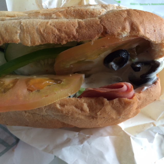 Subway has these daily specials which are good value, $5 for just a choice out of 4 sandwich types (Tuna Mayo, Cold Cut Trio, Ham, or Egg), and includes a regular drink.I was in the area and decided to go for the Cold Cut Trio daily special, which is stacked with turkey-based meats - ham, salami and bologna. I selected all the sides (including tomatoes, cucumbers, olives, lettuce etc) except for chillis, onions and pickles. The vegs were fresh, the cheese a tad ordinary, and the bread fairly well toasted. Service was fast, probably because this outlet was quite empty.Overall, my sandwich was decent, a quick meal, but I have also had better!…查看更多