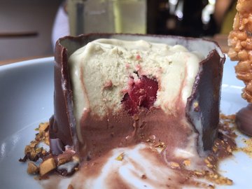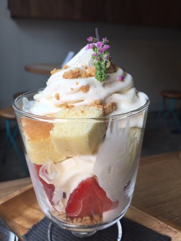 The cafe was by the people behind creamier. Instead of ice cream, the cafe specialized in soft serve. Only cash and NETS payment was accepted here. Help yourself to the water from tap from the counter. This christmas the cafe offered 2 limited desserts and 3 dessert sets.Winter Yuzu Ice Cream Trifle (S$12)Limited to 10 servings per dayThe dessert used Japanese Yuzu which is a lemon sized fruit with a distinctive, delicate citrus perfume, in season during winter and traditionally used in Japan during the winter solstice. Layered with soft sponge cake and citrus cookie crumbles, the rich indulgent taste of the Madagascan Vanilla ice cream contrasts with the citrus zing of Yuzu gel and light acidity of fresh strawberries. Crowned with a stalk of fresh edible Shiso hanaho flowers. Freshly prepared upon order.Looked simply pretty, it tasted with a zing.Pistachio Chocolate Ice Cream Gateaux (S$12)Limited to 10 servings per dayA double layer of dark chocolate and roasted pistachio ice cream with a red berries sorbert surprise. Encased within an intense bittersweet dark chocolate shell and bedecked with a dallop of Varlhorna Azelia ganache, gold flakes, burnt caramel rice puff brittle and crushed roasted pistachio nuts.A mixture of flavours in the mouth with the rich creamy ice creams, and the intense sorbert.Lemongrass Cucumber Infusion ($6.50)Rehydrate with this refreshing infusion packed with chia seeds, fresh cucumber peels and lemongrass.Tasted like the usual lemongrass drink but with the crunchy chia seeds.Best come early. Although it was just noon, the place was packed.…查看更多