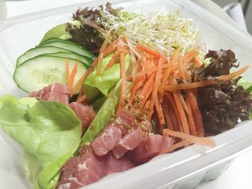 The oultet was located at the ground floor of one end of 100AM. There was limited dining in area. So I had the food taken away.SIGNATURE FRIED BACK ROLL ($6.90/ half roll)MAIN: Crab Meat, TamagoGREENS: Lettuce, Cucumber, AvocadoTOPPINGS: Flying Fish Roe, CheeseCal: 227 kcalThe roll looked ugly. It had quite oily taste although it had the right texture with the chewy rice, juicy crab meat and tamago, and the popping fish roe. But it was just too oily to have.SAMURAI CHICKEN ($6.90/ half roll)MAIN: Fried Popcorn ChickenGREENS: Red Green Yellow Capsicum, Green Coral Lettuce, Japanese Cucumber, Takuan, AlfalfaTOPPINGS: Togarashi Powder (Spicy)Cal: 228 kcalCrunchy vegetables, although wished that the popcorn chicken was be crispier.TUNA SASHIMI SALAD ($7.90)DRESSING: Wasabi & Yuzu SauceCal: 250 kcalThere was not enough dressing to coat the salad evenly. The tuna sashimi tasted a bit off to me.FOREST SALAD ($7.90)MAIN: Sauteed MushroomDRESSING: Wafu SauceCal: 200 kcalThe mushrooms were well cooked but the dish was let down by the over used of black pepper here. It just tasted of black pepper which covered the nature taste of mushrooms.Service not bad, but the food got to improve some.…查看更多