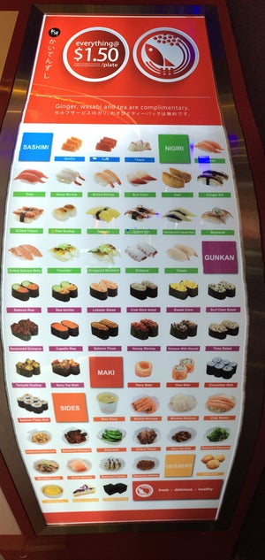 At $1.50 per plate (before GST), it's cheap comparable to other Japanese restaurants. After GST and service charge, it's less than $2 per plate.I took pictures of 3 dishes I'd be back for. These selections disappear off the sushi train rather quickly as they're quite rare and I suppose their costs are higher. unagi sushi roll. relatively thick pieces with riceblueberry cheesecake that was sweet without being too creamy, nor too light. each bite was delightful.miso soup needs to be ordered and there were surprisingly thick pieces of salmon inside which makes it very worth it and unlike normal miso soup. The tea is refillable at the individual station you're sitting at.…查看更多