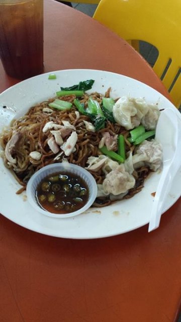 True enough, there is nothing really unique about Wanton Noodles yet it was the most traditional food I like to eat. My friend recommended me came this place, arrogantly opened only during evening and night. I can understand why many patrons went here, huge portion with affordable price. Opted for Wanton for my noodles, I gave up red colour Char Siew. Mee Pok which was thicker version, noodle was simple plain with slight pork lard fragrance. Covered up by dark soy sauce, greenly veggies and few pieces of steamed dumplings were placed on top. Noodles remained springy, texture was just nice without mushy. I stirred up, enjoyed my plate very much. Price was $3.00, definitely worth the value. …查看更多