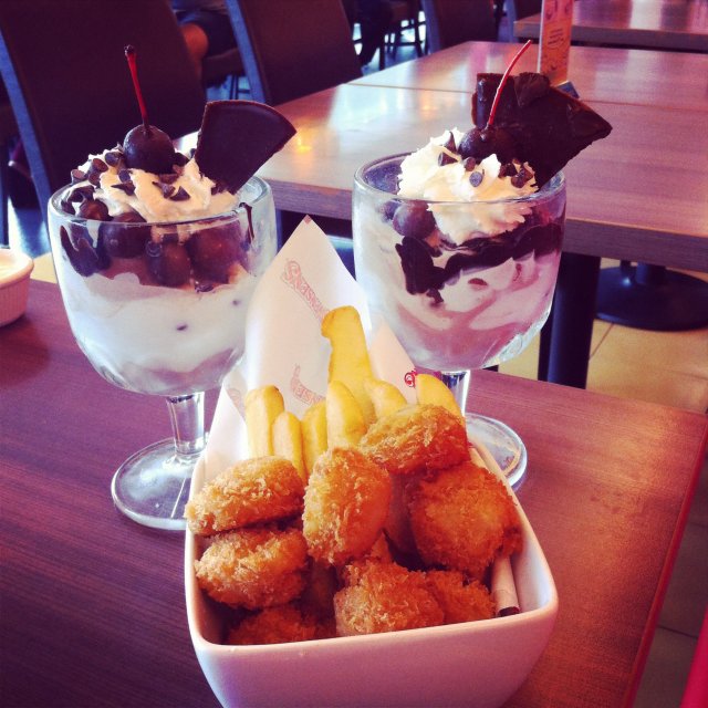 Swensen's has been a family restaurant that does American classic dishes with a local twist in Singapore since 1979. Christmas is all about celebrating good times with family & friends over delightful meals and Swensen's has planned out a Christmas menu just for you!Looking at their christmas menu, you realize that they have gone "Asian Fusion" with full force, such as Potong supreme pleaser, sweet corn fever and turkey burger!1. Firecracker Soft Shell Shrimps $8.50++These flavoured bombs are coated with a tasty blend of spices and fried for that perfect crunch. They are outrageously addictive, these lightly battered morsels are served with swensen's very own pineapple BBQ sauce. The batter around the shrimp was salty but not too overpowering, paired with the sweet and savoury sauce, I could devour all the shrimp and yet not feel overly thirsty!They were very generous with the shrimps as I think there had to be at least 20 of them. When I was finally though an entire generation of shrimps. Lo and behold, there was a a bed of thick cut french fries!! The fries together with the pineapple BBQ sauce was a match made in heaven! I highly recommend ordering this just for the sauce! 2. Chicken Istimewa $15.90++Succulent Chicken laced in a mild spricy fragrant marinate with tastes from exotic Indonesia. The chicken is grilled to perfection, leaving a very juicy and succulent chicken thigh meat. Served with traditional sambal balachan, which I found a bit too spicy and achar. This is the epitome of a rich Asian culture that makes you feel right at home for Christmas.The chicken was very memorable and there were 2 big pieces. I felt that they could've served you more rice, as the rice portion was very small, and more like a tiny sidedish! The rice could've been a coconut seasoned rice like the nasi lemak kind. 3. Chocopop $5.50++Chocolate ice cream coated with cocoa pops. I wanted the Ol'Vanilla as it was coated with almonds but after ordering, a staff came back to explain that they had run out and recommended this instead.Despite it's glamorous look, it was actually completely frozen. It took about 10 minutes of starring at it on a plate, before my teeth could BITE into it. There's chocolate ice cream all the way to the bottom of the cone as well! I loved the creamy, sweet and slightly bitter chocolate ice cream!Swensen's has developed over the years to become a restaurant chain offering not only ice cream, but fun and friendly casual-dining with a wide selection of hearty food, desserts, beverages, ice cream cakes and takeaway novelties. For christmas this year, if you looking for a dine-out family meal, do give swensen's a go! Their food offerings might just surprise you like they did to my expectations!…查看更多