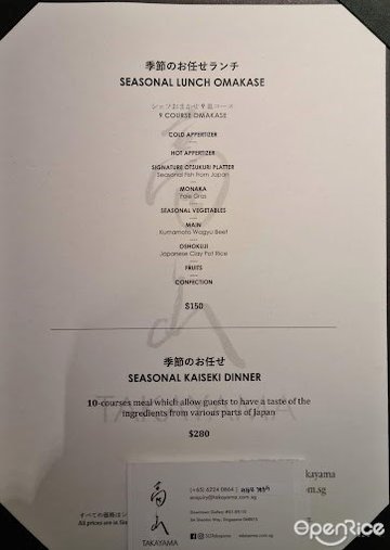 The restaurant was small so it was best to make a reservation before coming. I was showed to a counter seat. Great service from the staff who covered my bag with a sliky cloth. For lunch it was 4 course lunch set with a choice of main, served with refillable green tea.Course 1 : Homemade tofuThe tofu was served hot in a cup , topped with uni (sea urchin). The texture was very light and smooth.Course 2 : Appetizier PlatterSeasonal otsukuri (sashimi) : otoro (fatty tuna), big squid, and tai (Sea Bream)Seasonal cold appetiser : Aburi (torched) scallop, topped with ikuraSalmon sushi rollSmoked duckFried vinegared fish Tako (octopus) Egg roll with shrimp roeThe unique item here turned out to be the plain looking egg roll. It was so light, airy and fluffy. One was thinking about of steamed cake. Not the usual firm and too sweet version.Course 3/ Main Course : Stewed agu pork (S$68++)Served with refillable Pickled vegetables (kelp, chinese cabbage, cucumber), Hokkaido rice (today's flavour was abalone), Miso soup (today flavour's was tiger prawn)The kelp pickle was quite crunchy, with texture similar to black fungus. The miso soup was served with a cake which packed with crunchy bouncy pieces of prawn meat in it. The rice was quite flavourful on itself with bits of abalone. Although not melt in the mouth type, the fatty parts was not jelat. Dipped the meat with the powder for a spicy kick in taste.Course 4/ Dessert : Fruits jellyJapanese strawberry, mango and lychee packed in the jelly, topped with mango puree. It was light with sweetness from the fruit itself.Overall the food was delicious. The staff made an effort to introduce the dishes.…查看更多