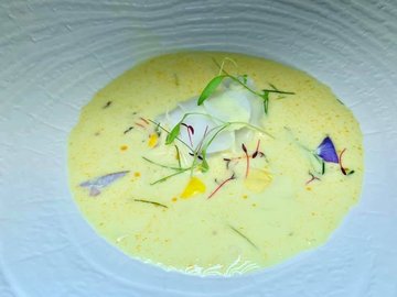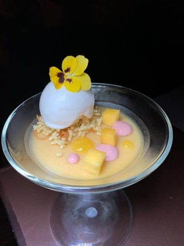 Attended Chef Ian Kittichai X Chef Thitid Tassanakajohn of Le Du from Bangkok, Thailand 🇹🇭, 4 Hands CollaborationAt Tangerine @ Espa In Resorts World Sentosa in Resorts World Sentosa from 11 April 2019, 7pmChapter IISavour’s 100Gourmet April Edition6 Course Dinner (S$180++/ public, S$110++/ Singtel & Maybank customers)Although we arrived early, there was a hiccup as the staff could not my reservation. But soon we were showed to a table.Spring onion & coriander breadThe bread was served top of a flower pot with pesto sauce in it. The bread was buttery soft.Seared ScallopChef Ian KittichaiTangerine’s garden herbs, cashew nut milk-pepper dressingInspired by the herbs grown in Tangerine’s garden with a lightly seared diver scallop, house-made Thai cashew nut milk and a touch of Thai chiliServed in a shell, decorated with colorful flowers, it was simply to pretty to be eaten. The scallop was so juicy.Cured FlukeAvocado, green mango & gingerChef Thitid TassanakajohnThis dish is inspired by the Thai people’s favourite green sauce , affectionately called “nam jim seafood “. However, he wanted to do it differently, in a modern and artisanal way incorporating avocado, a fruit many people don’t know can grow in large quantities back in Thailand. The flavour is rich and intense but not overpowering the delicate fluke.First time having cured fish in thai style. The cured fish looked more sashimi then cured.Sustainable Sea Bass SoupChef Ian KittichaiTurmeric, Coconut - galangal brothAs humble as it sounds, this dish incorporates delicious local sustainable sea bass with local herbs in a Southern Thai-style dish.Milky soup which was more on the sour side. Interesting serving it from a teapot packed with lemongrass.Lobster in Signature Southern Style CurryChef Thitid TassanakajohSmoked pumpkin & signature Chu-Chee curryPaying homage to his favourite Southern Thai curry! It is traditionally a very spicy dish. He gave it his own twist with smoked pumpkin puree added for an additional layer of flavour and to balance out the heat of the curry.The sweetness from the pumpkin and the spiciness of the curry striked a balance in between.“Hunglay” Iberico PorkChef Ian KittichaiTamarind, pickled garlicThis dish is an interpretation of Chef’s love affair with the classic Northern Thai curryCooked 3 hours. The sauce was spicy but grew with a lingering aftertaste.Served with eggplant 🍆, pumpkin purée and pickled ginger. The curry was very rich. Yummy with just rice. The meat was flavourful although would prefer it to be more tender.Mango Panna CottaChef Thitid TassanakajohnSmoked coconut ice creamWhen speaking about Thai food, who can leave out the popular Thai dessert, Mango Sticky rice! This dessert follows a similar concept, but without the sticky rice. A lighter version, but still possessing the essence of the perennial favourite in every bite.Interestingly the crispy rice provided a kind of savoury kick to the sweet and slightly tart mango 🥭 pudding. The smoky ice cream was quite unique in taste. Overall the food was totally different from the usual Thai food. Only that the serving portion was kind of small. The first 3 dishes were served pretty fast and smooth but the wait for the last 3 dishes were quite long. Maybe it was the first night and the kitchen staffs were not familiar with the place.…查看更多