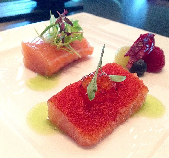 Cured Atlantic salmon, Granny Smith apple and celery juice