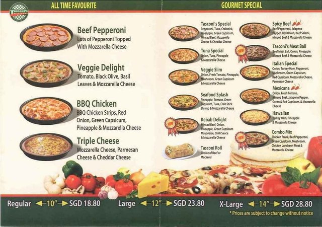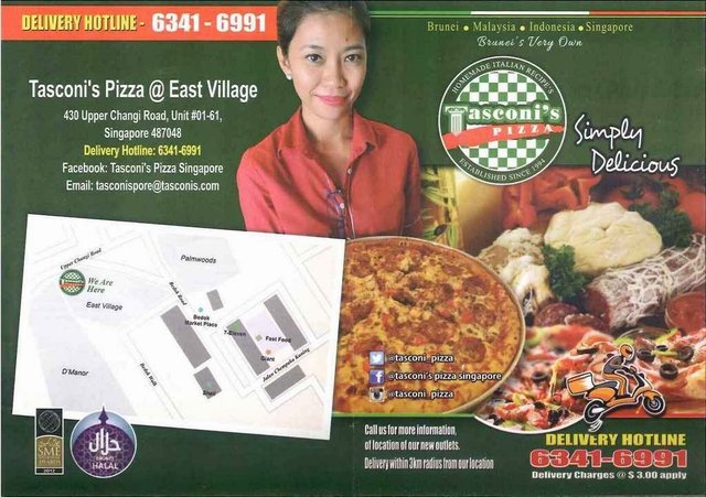 Tasconi's Pizza (新加坡) 網址: https://s.openrice.com/eKbSB01whK100 地址: East Village, 430 Upper Changi Road #01-61, Upp Changi, Singapore 電話: +65 6341 6991
