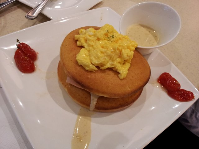 Found out that only Airport branch have all day breakfast.The pancakes are soooooo goooood. Thick and fluffy inside, crispy outside. Matched with the cream sauce, ham and eggs, absolutely divine. I can finished all by myself but willingly I have to skip the next meal as it was quite filling by its own.Most of the other dishes are fine, like the chilli crab pasta and the salmon sandwich. We ordered quite a variety of dishes that day as we had a big group. All of us left with a satisfying smile on our face.…查看更多