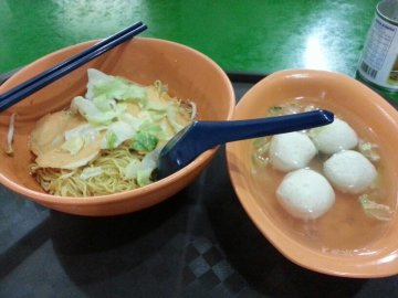 Teochew fishball noodles. $3. In the morning, there's no queue but once lunch time is here, a long queue will quickly start forming. The fishball noodles here taste above average. The taste of fish could be felt in the fishballs although not very strong. The fishballs were not fishy too. If you are a fan of fishball noodles, you should try this out. Their fishcake is also quite unique and big.…Read More
