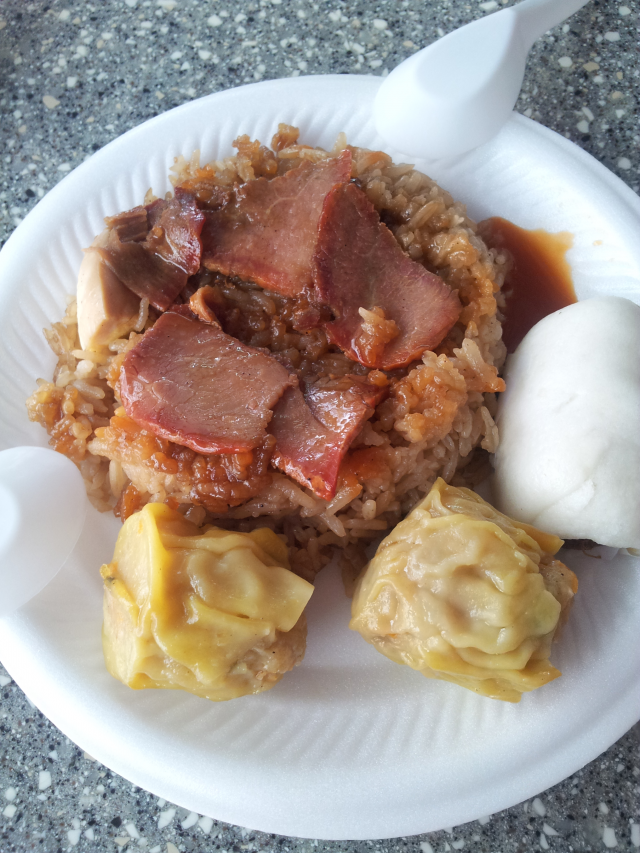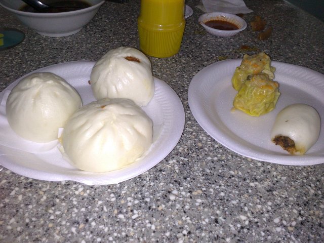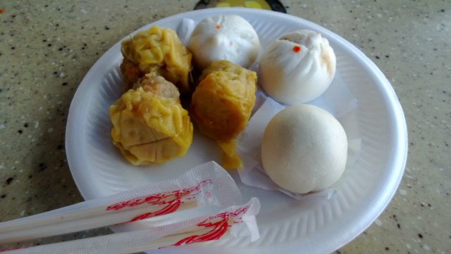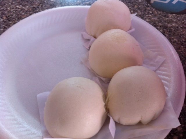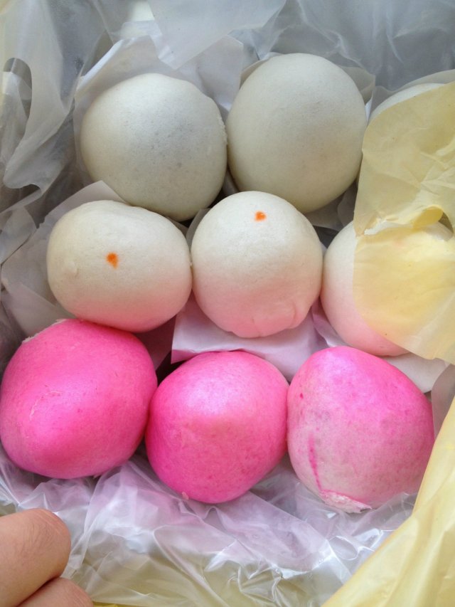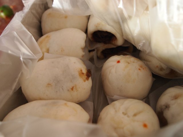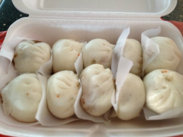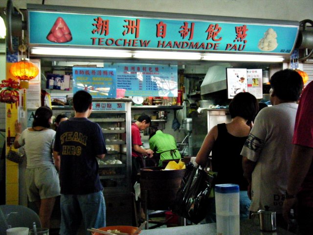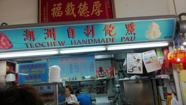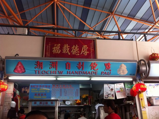 There is a long queue of people at this stall when I reach the place. And most have huge orders. For example the guy in front has ordered 12 lotus pasta pau and 12 steamed meat pau. With such long queue, there is only 2 staffs serving the customers and another one busy making the pau at the back.Stewed pork / Bian pau 扁包 ($0.60)It is the first I have a stewed pau that is so small. Can nicely fit into the mouth. The pork is shredded into pulled pork form, very tender and flavourful but I feel it is a bit dry.Roasted pork / Char Siew pau 叉烧包 ($0.60)Unlike the usual red coloured char siew, here it looks a natural brown and in a quite finely chopped texture. Steamed meat (small) / Xiao Rou pau 小肉包 ($0.60)Steamed meat (big) / Da Rou pau 大肉包 ($1.20)The meat filling tastes quite lean. A bit disappointed as there is no egg in the big steamed pau.Chicken meat / Ji Rou pau 鸡肉包 ($1.20)The meat filling is very finely minced, and tastes quite juicy, unlike the usual the fatty filling.Red bean paste / Dou Sha pau 豆沙包 ($0.60)The red bean paste is not too sweet.Longevity (Lotus paste) / Shou Tao 寿桃 ($0.60)Lotus paste / Lian Rong pau ($0.60)Both have lotus paste filling, but must be real good because after grandmother has the lotus paste pau, she also has the Longevity pau, giving some reason that Longevity pau is for old people. Steamed chicken (glutinous) / Luo Mai Kai 糯米鸡 ($1.20)The rice is quite flavourful, topped with the juicy chicken slices.Pork dumpling / Siew Mai 烧卖 ($0.60)This tastes quite average.Overall the pau are delicious and have quite thin skin. Except that the pau are quite small in size, even for the big steamed pau.…查看更多