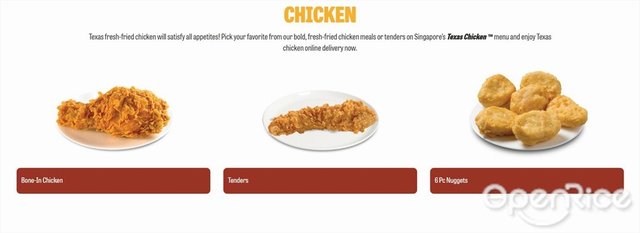 Texas Chicken (新加坡) 網址: https://s.openrice.com/eKbSB01v4m000 地址: Nex, 23 Serangoon Central #04-18/19/20, Serangoon, Singapore 電話: +65 6634 2130