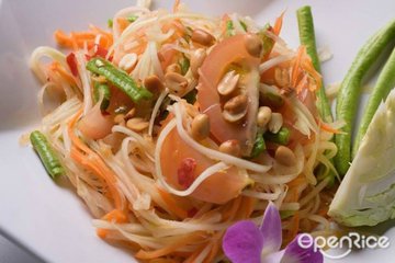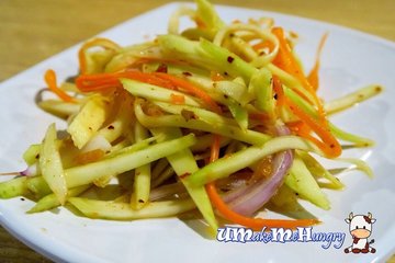 http://www.umakemehungry.com/2016/06/thainy-town-invited-tasting.htmlLocated at the humble corner of Junction 10 (Previously known as Ten Mile Junction), you will find this causal family corner name Thai'Ny Town. If you have heard of D's Kitchen Mookata in the premises of Woodlands Industrial Park E2, Thai'Ny Town is actually one of the stalls branching out from its Traditional Thai Barbecue business. In fact, Thai'NY is more specialized in serving ala carte dishes.With a group of supportive Thai Locals working in the kitchen, there is no doubt about its authenticity. Moreover, having said that, we have met the boss, Demise, who shared a fair bit about D's Kitchen. When asked why is it called D's Kitchen, he mentioned that "D" is actually the starting alphabet of his kid's name and his.Environment was simple with wallpapers sticking to the back of the wall.Starting of the meal with the commonly ordered Thai Appetizer, Mango Salad. Although I'm not someone who can really take spiciness, this dish is perfect on spot for someone like me who cannot take high level of spice.Set your preference of the Tom Yum Soup! Red or clear? We had the red version and to be honest, the soup itself was indeed spicy even though it was said that they have altered their recipe with use of more onions.Though I'm not a person with high tolerance in spicy food, I enjoyed the soup with its generous serving of seafood like prawns and sotong.Fish and prawn cake will be something I will vote for. These cakes were made from scratch, with fish cake holding its uniqueness for its bouncy texture.Dip these golden fried cakes into the sweet and spicy sauce to elevate its taste!Gearing away from the mainstream of Thai Spicy Minced chicken with basil, Thai'Ny Town had actually did a improvised version of this dish. Carrot cubes were added to give a sweeter taste of it with a lighter taste of basil.The usual pineapple rice had the usual ingredients like meat floss, rasins, cashew nuts but still lacked the fresh, juicy and tangy pineapple that burst the flavour of the turmeric rice.Moving into another common dish in Thai cuisine, the Green Curry. It's best to pair along with a bowl of plain rice covering the grains with the savoury curry. Curry gravy thickness was not too thick which is perfect, however I will prefer a stronger green curry flavour.What I like about Thai'Ny town is their innovations, a little here and there, driving and getting us away from the usual Thai Food scene we all see in the restaurants. We had the tasting portion of Pla Too (Short Mackerel) coated with a teaspoon amont of Belachan. The spice was great on the Mackerel without being overpowering but on a salty side. Perhaps one thing that diner has to be careful is its fish bone. Presentation on the other side was beautiful with the right use of colours.The stir fried rice noodle dish was simple and an average fare that will go well with other ala carte dishes.Larb Gai, a common dishes served in Thailand. "Larb" which means Salad and Gai as "Chicken" in Thai is often a easy and straight forward dish they make. However, it can be extremely spicy but the use of lime juice and mint leaves had given this dish a splendid combination.And of course, dont forget to have cups of milk beverages like this as it aids in washing down the spice through your digestive system.Awesome! The sweet and smooth mango is the must try. With creamy coconut milk adding on to the fragrance of the steamed rice, they are definitely addictive and toothsome, just like those which I had from in the streets of Bangkok.Glancing through the menu, the prices of the dish is rather affordable keeping in mind we are dining in a air-conditioned environment and in the mall. If you are looking for simple and not overly commercialized Thai Food, Thai'Ny Town could fit the bill.…查看更多