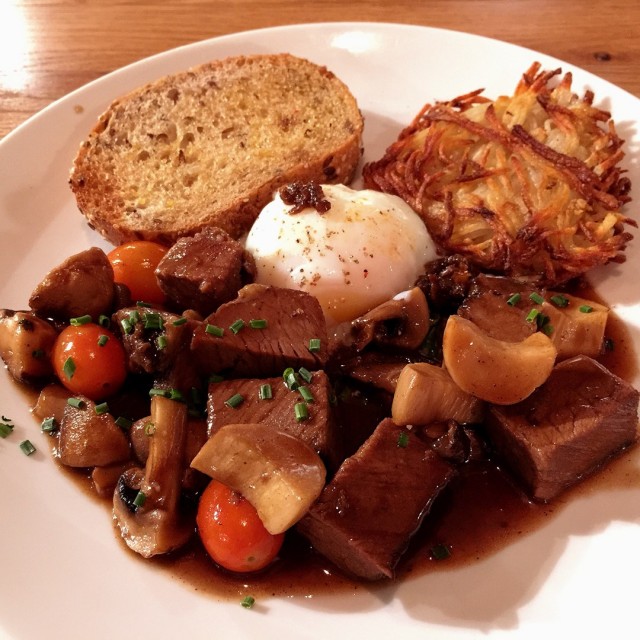 For more reviews, visit www.umakemehungry.comThe Assembly Ground is located at the first level of the Cathay suitable, an ideal place for coffee lovers to gather or even those who enjoy gathering over craft beers too.Interior was industrial themed with wooden tables furnishing giving a classic cafe vibe in a hippie atmosphere with bicycles hanging on the wall and LED lightings hanging down from the cable tray.While waiting for all members of the group to be present on our gathering. We started to chat among ourselves over their appetizers. There were not much choice for appetizers and Straight Cut Fries were Served with Parmesan and tartar sauce.These bite sized chicken tenders were bigger than what we had in the fast food chains. Crispy and served with spicy mayo.Having the best of its meat and crispy fish skin salad with Parmesan fries and Wasabi Aioli.Pasta was kind of overdone and soggy. It was served with slices of chicken sausage with bacon, chilli, basil in white wine as well as garlic.One of us termed this as "vegetarian" burger as it was mostly vegetables without meat. Created with U.S Portobello, mushroom jery, mozzarella, cheddar, cheery tomato, chutney and arugula.The staple dish that almost every table ordered was none other than their Brunch set, Assembly Brunch. The platter was served on a wooden board with scrmbled eggs, wiener sausage, sauteed mushrooms, potato gratin, roasted cherry tomatoes, toast, choice of smoked salmon or bacon.Pizza was the best order of the night, thin crust filled with ingredients like baked ham, sauteed mushrooms & truffle oil. What made this special was the runny egg in the centre.Overall, the service at Assembly Ground was friendly and efficient. I won't mind being back for gathering again.…Read More