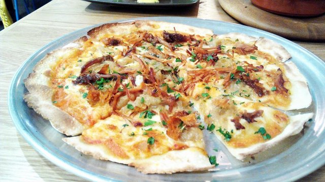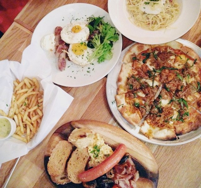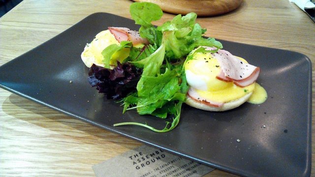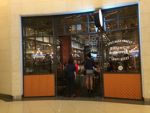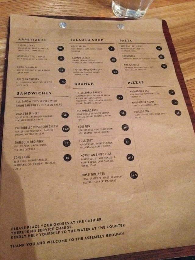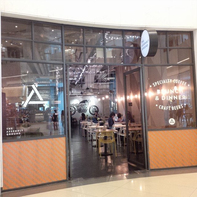 For more reviews, visit www.umakemehungry.comThe Assembly Ground is located at the first level of the Cathay suitable, an ideal place for coffee lovers to gather or even those who enjoy gathering over craft beers too.Interior was industrial themed with wooden tables furnishing giving a classic cafe vibe in a hippie atmosphere with bicycles hanging on the wall and LED lightings hanging down from the cable tray.While waiting for all members of the group to be present on our gathering. We started to chat among ourselves over their appetizers. There were not much choice for appetizers and Straight Cut Fries were Served with Parmesan and tartar sauce.These bite sized chicken tenders were bigger than what we had in the fast food chains. Crispy and served with spicy mayo.Having the best of its meat and crispy fish skin salad with Parmesan fries and Wasabi Aioli.Pasta was kind of overdone and soggy. It was served with slices of chicken sausage with bacon, chilli, basil in white wine as well as garlic.One of us termed this as "vegetarian" burger as it was mostly vegetables without meat. Created with U.S Portobello, mushroom jery, mozzarella, cheddar, cheery tomato, chutney and arugula.The staple dish that almost every table ordered was none other than their Brunch set, Assembly Brunch. The platter was served on a wooden board with scrmbled eggs, wiener sausage, sauteed mushrooms, potato gratin, roasted cherry tomatoes, toast, choice of smoked salmon or bacon.Pizza was the best order of the night, thin crust filled with ingredients like baked ham, sauteed mushrooms & truffle oil. What made this special was the runny egg in the centre.Overall, the service at Assembly Ground was friendly and efficient. I won't mind being back for gathering again.…查看更多
