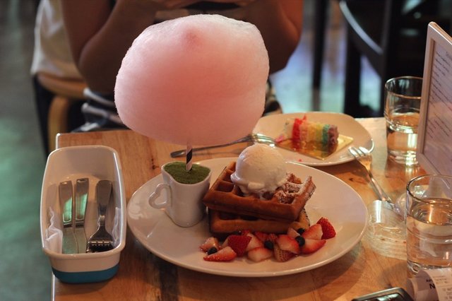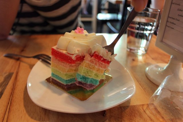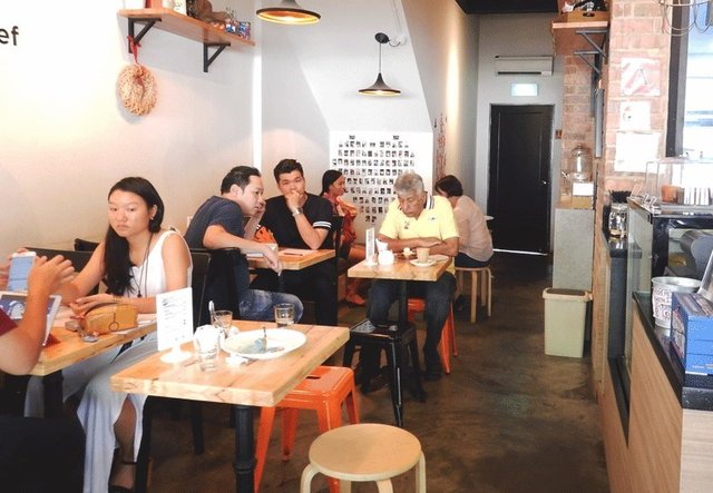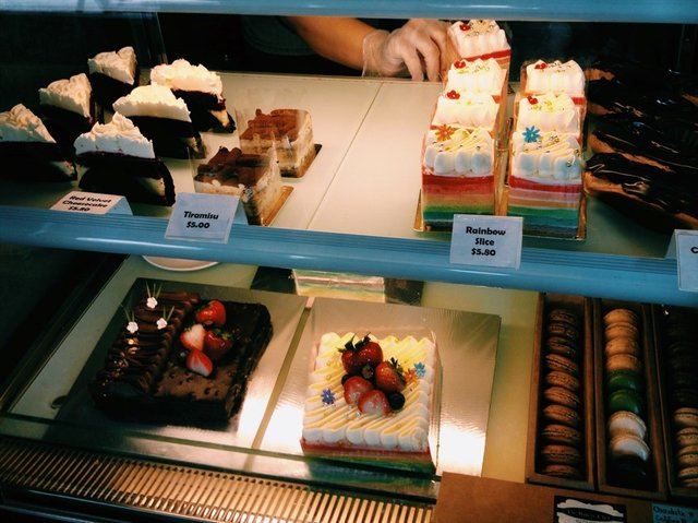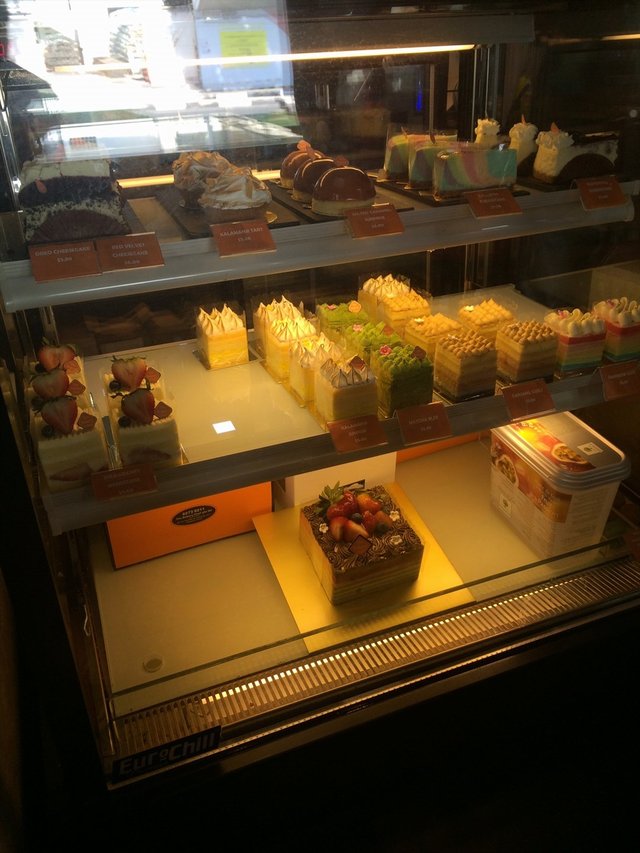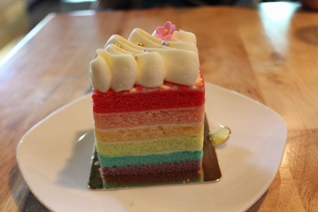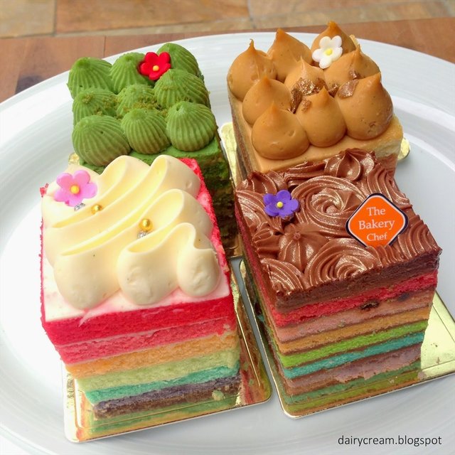 The bakery chef, located in bukit merah central, serves waffles, cakes, soft serves and their signatures toast. The toasts ran out of stock easily. Upon cutting the thick toast of bread, you can observe the lava within ooze out immediately. The café was generally small and compact with some tables outside of the store to accommodate more diners. Upon entering, you will be greeted with a huge chalk board indicating the menu of the shop. If you are not tempted by the food menu, one can choose from the cake display or purchase their specialty – Bread Toast. We decided to order a few items to try such as the thick toast, rainbow cake, rainbow Caramel guilt and blue salted caramel soft serve. For the price of $12.80, you get a choice of toast (charcoal, brioche or matcha), fillings (salted egg, Nutella or matcha) and a scoop of ice cream (chocolate, vanilla or matcha). We have chosen two toast to try to spot the taste difference. The first order was brioche toast together with nutella lava and matcha ice cream while the other order is charcoal toast with salted egg yolk lava and vanilla ice cream. The brioche toast was actually a form of french toast.We could taste the buttery taste of the thick toast. It was really buttery and crispy. Upon bitting, the inner core of the bread was fluffy and soft. Oh ya, I forget to mention that I love cutting the toast. This is because the moment you cut the toast, the lava gushed out. The nutella lava was really smooth and rich. The café was really generous with the lava filling.Lava Toast ($12.80)See!! The lava following outGenerally for the charcoal bread, it was crispy but I found the bread very bland. But I guess it was ok as it was meant to accompany the sweet-savory salted egg yolk lava within. The salted egg yolk lava was flowly and a little grainy. Another hot favourite was the blue sea salt soft serve. It was really pretty and yummy as well. The salted caramel taste was just nice not to make you too sick of eating it. Sea salt ice cream ($7.20)Rainbow Caramel guilt has a pretty appearance with layers of fluffy moist rainbow cakes topped with droplets of caramel cream. We love the texture of the cakes. Within the cakes, it also contains a caramel core. As we are not a fan of too sweet food, we find it a little too rich and sweet. Rainbow Caramel Guilt ($5.80) With the same square shaped design, the rainbow cake was another pretty cake that drew my attention. The colours of the raimbow cakes tend to be brighter and pretty. The sponge cakes were layered with cream making it moist and fluffy. This suit my taste better as it was less sweet as compared to the rainbow caramel guilt. All in all, the cakes and desserts served here were great. But my favourite was definitely the lava toast. I would suggest that you visit café earlier in the day as we have several failed attempted visiting the café was it closed earlier than the operating hours as more of their food were sold out. Follow me at instagram/ facebook: @jacefootprintsRead more at http://jacefootprints.blogspot.sg/2016/05/singapore-bakery-chef-lava-toast-ice.html…查看更多