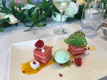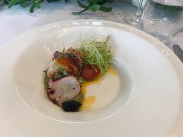 I’m here for my frds wedding, is really pretty and enjoyable to have lunch here.First course fresh yummy octopus, tuna and prawn with caviar and salmon roe on avocado smash.I think I just had the best corn soup ever, light truffle aroma, rich sweet corn flavour with some juicy crab meat.As is a big event, I think the pasta was left in the air for awhile which makes it dried up a little. Main dishes is cod fish cooked with a nice sauce and also serve with a creamy yum sauce. The veggies I think boiled alittle too long and the fish texture is alittle rough.I’m a big fan of pandan, this ice cream have really nice pandan flavour blended in. The cake and coconut jelly is too sweet for me.…查看更多