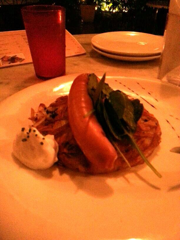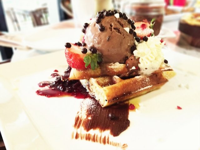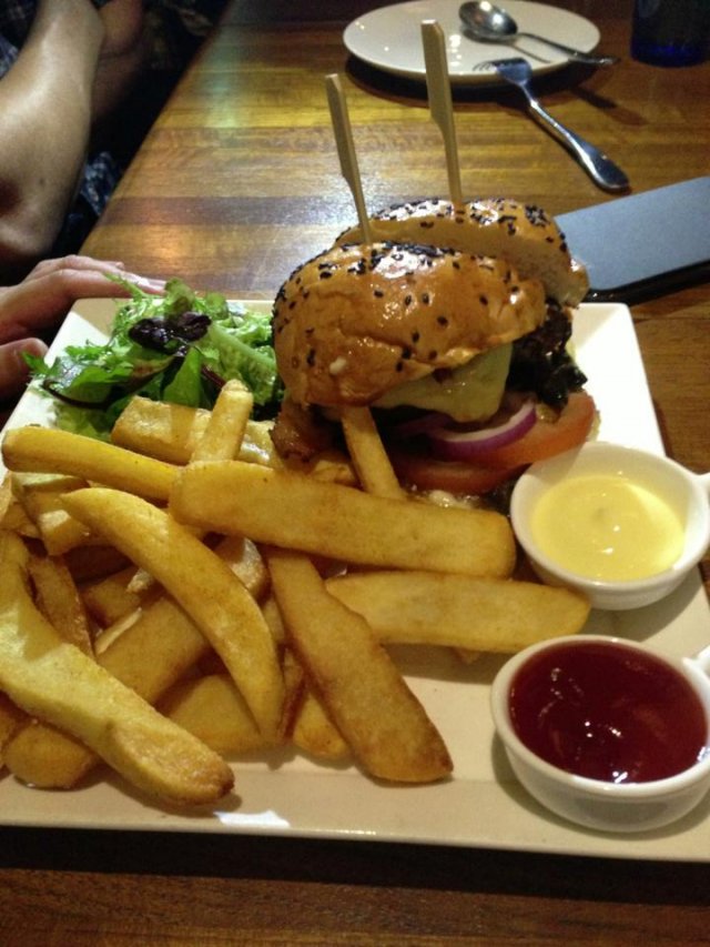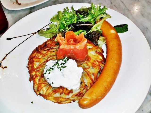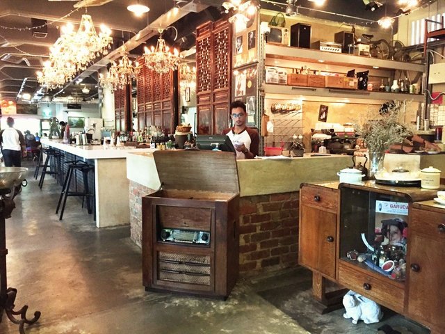 Full The Coastal Settlement (TCS) review here: http://ivanteh-runningman.blogspot.sg/2015/04/the-coastal-settlement.htmlTucked away at the far East of Singapore in the Changi Village area, The Coastal Settlement (TCS) is a quaint cafe that has, since November 2011, been serving up tasty Western and Asian food admist lush greenery. The consistent quality of their food has greatly contributed to their popularity, and The Coastal Settlement is nearly always packed at meal times, even despite its rather 'ulu' (out of the way) location.Ambience at The Coastal Settlement is eclectic. Surrounded by lush greenery outside, while the inside is almost like a retro / vintage museum collection. All sorts of items from the past adorn the walls, from old paintings, to retro vehicles, to nostalgic gadgets. There is ample seating, and I estimate that The Coastal Settlement is able to acommodate up to 150 diners at once, with both in-house and outdoor al-fresco dining. However, I dislike the dimly lit interior, and the furniture, while sturdy, isn't comfortable and shows signs of aging.Service at The Coastal Settlement is good. Staff are assigned to specific areas, which is helpful so they don't have to run the entire length of the place. It also makes it easier for diners to attract their attention. I like that staff offer greetings, and are quite proactive, coming around to see if you're ready to order, as well as ask for feedback during your meal. However, it's also feels rather mechanical instead of special, and they're not too knowledgable on the menu, or the dishes. Plus, The Coastal Settlement tables give me a sense of slight uncleanliness, as sometimes flies / insects get into the dining area.Food at The Coastal Settlement is a mix of Western (American, British, French, Italian), Asian (Japanese, Chinese, Malay, Singaporean, Thai), and Modern Fusion influences. Dishes are generally very tasty, well cooked and executed, and served in huge portions with good plating presentation. This is probably the main reason why so many people still dine at The Coastal Settlement. Prices are slightly high though, budget about SGD $34 per person for a meal here.The Calamari With Passion Fruit Mayo (SGD $14) is a lovely fusion of curry spiced salt and pepper squid, with a light, savoury crust, and fresh squid that still has that bouncy / chewy texture. Served with a unique passionfruit mayonnaise, which actually comes on the side in a halved passionfruit! Would have been better if the kitchen scooped out the passionfruit seeds!The star of the Rosti Sausage (SGD $23) is the crisp, well fried, hand cut potato rosti. Likely the most flavourful rosti I've had in Singapore! Even better with the generous dollop of sour cream! The dish is served with a well seasoned, fresh mesclun salad, a thick, juicy chicken cheese sausage, and a rosette of savoury smoked salmon. The smoked salmon was the weakest link in this dish, being rather average in taste, but all the other items were very tasty. Highly recommended!The Black Forest In A Jar (SGD $14) is a huge serving of thick, dense, smoked chocolate chiffon cake, almost brownie-like in texture, stacked in a jar, coated with rich chocolate syrup, chocolate balls, and dehydrated peanuts. Sprinkled throughout with several sweet, juicy, maraschino cherries, which burst with flavour. Topped off with a scoop of rich French vanilla bean ice cream, smooth whipped cream, and chocolate shavings. This is a rich, filling dessert, true to the taste of a typical German schwarzwälder kirschtorte / black forest gateau / blackforest cake, but served in a semi-deconstructed manner. …查看更多