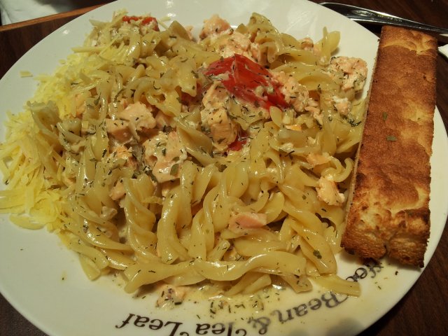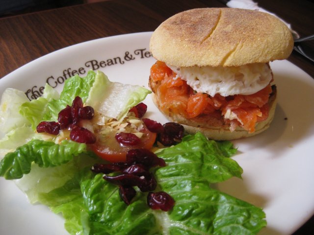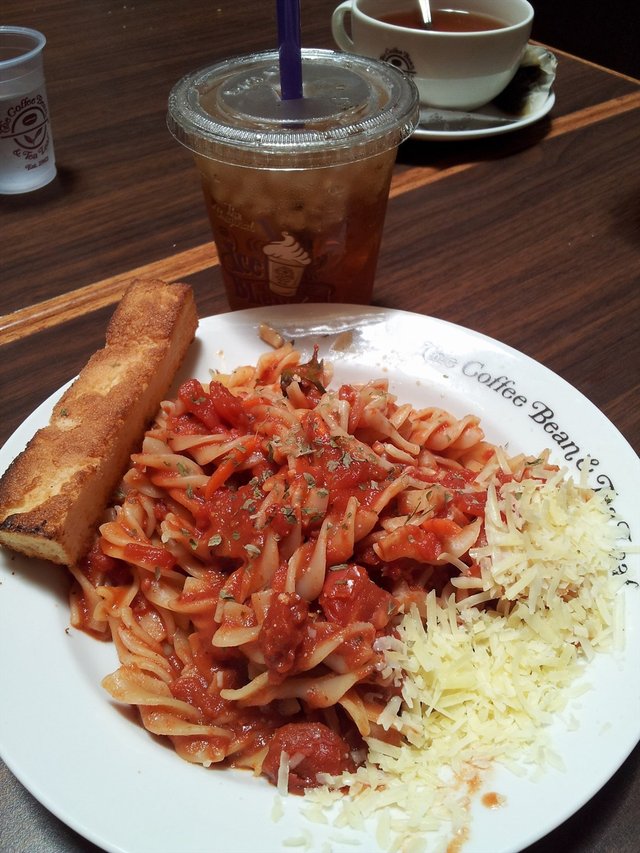 I have always love the all day breakfast menu at Coffee Bean as well as their pasta menu. Had lunch with a friend who have not tried the food here before.We were in a pasta mood today, so we ordered the Tomato & Herb fusilli ($9.90) and Salmon & Cream fusilli ($11.50)... my friend changed her salmon fettucine to fusilli. We added $1.50 for a drink, an ice fruit tea and a hot tea.I have tried the all day breakfast before and it includes a free drink, but for their pasta menu, you need to top up $1.50. Still, its quite worth it.The tomato & herb is quite nice, I dont really like tomato based pasta but thought of just trying it out... I feel that there is like too much of the tomato sauce though. The salmon & cream is nice, I have tried it before too. But I have to say their pasta serving is too big, always cannot finish.... so, normally I would prefer their breakfast menu, unless Im hungry and in the mood for pasta!…查看更多