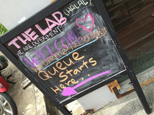 ——————————————————————————————-Started only 2 months ago, The Lab SG is the latest cafe in Arab street. When you walk in, it feels like you are really in a lab, with chemical bottles at the counter and sewage pipes around the cafe. I tried their signature HeisenBurger featuring well grilled beef patty, with bacon, blue cheese, garlic mayo and served with sweet potato fries. The patty is really juicy with a slightly tangy tomato sauce, caramelized onions, and blue cheese on top! I am addicted to the fries which leaves a lingering sweetness in your mouth.…查看更多
