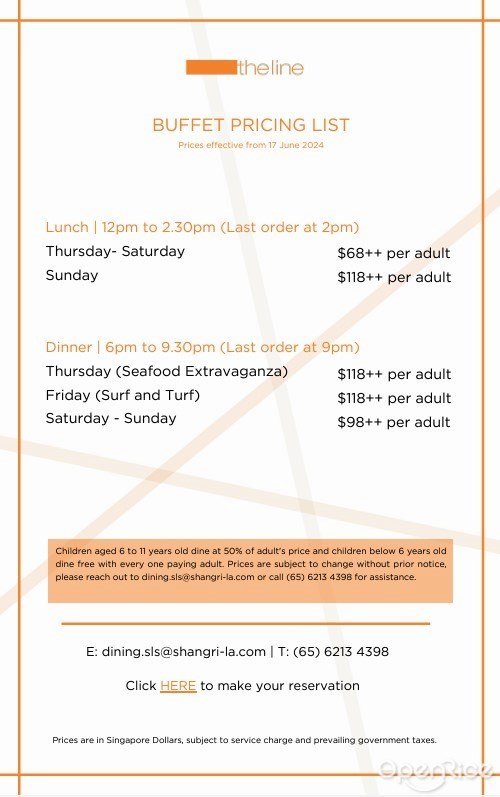 The Line (新加坡) 網址: https://s.openrice.com/eKbSB01nYO000 地址: Shangri-La Singapore, 22 Orange Grove Road, Lower Lobby (Tower Wing), Orchard, Singapore 電話: +65 6213 4398