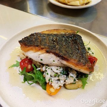 Booked the place for Christmas eve dinner and the restaurant was having Sunday Roast Dinner. There was 3 different dining slots for dinner. I selected the earliest which was 5.30pm and the 2 of us were given the kitchen counter seats where we had a great view of happening in the busy place. Sitting next to us was the head chef's mother who shared with us who was visiting Singapore. Watching the kitchen, I realized the roasted turkey was faster than one usually expected.We started the meal with Pork Terrine (S$15++)Served with homemade pickles and clementine jamThe light crispy toaste, spread with the chunky terrine, and topped with some pickles such as onion, and beetroot, quite peaked up the appetite. Beetroot & Gin Cured Salmon (S$15++)Served with cucumber potato salad and herb mayonnaiseThe salmon tasted just like sashimi that one would not felt that it was cured version.The meal was followed by huge serving of main courses. Roast Beef (S$25++)Served with sides of red cabbage, buttered green beans, duck fat fried potato, and bread sauceWhile the meat looked rather raw, it sliced easily and tasted delicious. The sides were good too, except for the bread sauce which one felt it was too starchy.Roast Turkey ( S$25++)Served with sides of red cabbage, buttered green beans, mashed potatoes , and gravyOne would thought that the meat would be rather tough and dry, but the version here was kind of juicy and went quite well with the light but flavourful gravy. Topped up with the well braised slightly sweet cabbage, it tasted even better.Accompanied with Christmas stuffing (S$3++)Pork mince, pine nuts and thyme.I was not a fan of christmas stuffing as I always felt it was rather strong in herbs taste. The version was more like meat loaf with a bit of nutty texture.Ended the meal with a couple of Christmas cookies topped with cream cheese topping, complimentary from the chef.…查看更多