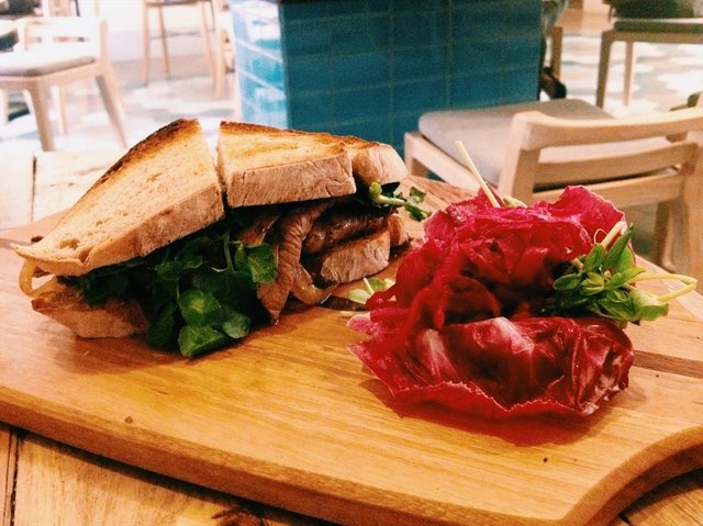 This new cafe on Neil Road is the offspring of Sarnies, another crazy packed cafe that I've yet to try (ZOMG call myself a food blogger).Well The Lokal checked off all the boxes on the hipster cafe checklist and they even went as far as to throw in a $40k Slayer machine. Oh that sexy beast took me on an intense ride with his latte ($5.50) and I must say it was all very smooth. And a little nutty too. The beans are from Sarnies and they have their barista consultant, affectionately known as the K Man, who is overseeing the coffee making for now.Many would go for the signature Veal Schnitzel Burger ($28) served with a tangy grilled pineapple and red slaw but we skipped that because chunky chips weren't available that day! Instead, i opted for the Roast Beef on Rye ($17). The sandwich was a combination of perfectly caramelized onion and thinly sliced sautéed beef. The flavors were a little sweet and could be sharpened with a stronger mustard than the current grain mustard crème fraiche. It was a good roast beef sandwich nonetheless.The Roast Chicken Panini ($15) was good too. The filling included huge juicy slices of fresh tomato (not the cheapo Malaysian sort), copious amount of avocado mash, crispy pancetta and salty roast chicken meat. The bread was our favorite among the lot of sandwiches we had, partly because it's a little more pillowy and chewy.A healthier option is the Smashed Avocado with Ricotta Sourdough ($18). The ricotta is made in house, along with their yogurt as well. It was simply topped with some pomelo and almonds, drizzled with olive oil. I liked the separate components of the dish but it came together rather plainly. A touch of honey could make this a better dish in my opinion but that's just my preference.I was looking forward to the Banana bread with Hokey Pokey ice cream ($12) but was sorely disappointed when I bit into the soggy bread cloyingly soaked by the citrusy syrup. We wondered where the ice cream went to as well (i swear i didn't take forever to grab a shot). Instead we had a sour cream sorta mixture on our dish. I couldn't bear more than a full bite of this one but K had no issue finishing it for us.Overall, The Lokal is a decent place for a hearty sandwich and it's probably going to be really packed on the weekends. A little bird told me that the Sarnies people are gonna be opening another cafe soon so do watch out for them!For more reviews, visit www.ms-skinnyfat.com…查看更多