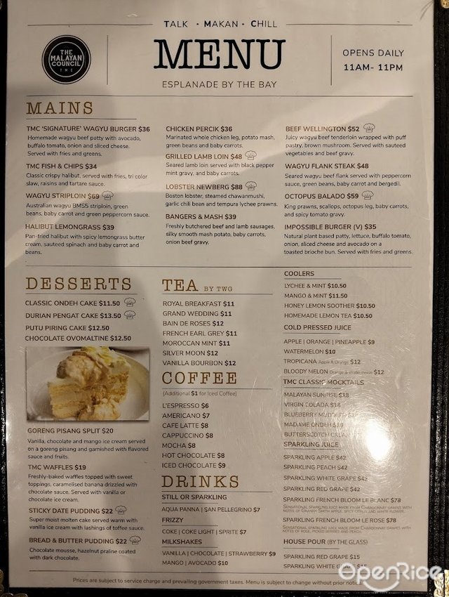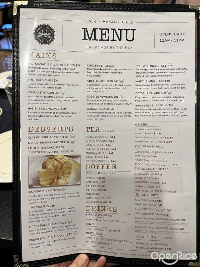 The Malayan Council (新加坡) 網上訂座即賺Rice Dollars 網址: https://s.openrice.com/eKbSB01UCO200 地址: Esplanade Mall, 8 Raffles Avenue, #02-14, Marina Bay, Singapore 電話: +65 9009 7345