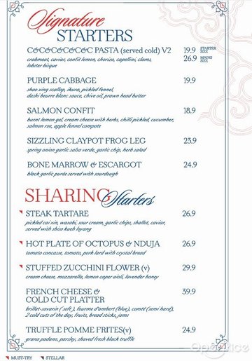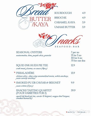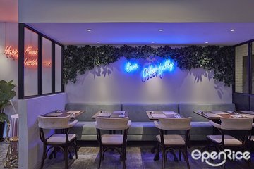 The restaurant was by Dylan Ong, formerly co-owner of the well priced french restaurant chain, Saveur. The restaurant was located walking distance from Bugis MRT station. The menu was kind of similar to Saveur.The Egg (S$9++)Ikura, Tobiko, Homemade Potato Chip, Beurre NoisetteWe had the hot version, which was presented like an atas version of chawanmushi. It was best to eat it with a bit of everything to balance the sweetness and saltiness. It was a party in the mouth.C & C Pasta (S$9++/ starter)Crabmeat, CaviarIt was served cold. A tab disappointed that it wasn't served with chucky crab meat flakes as showed by earlier photos posted online. The sauce was quite watery and could not really taste the crab in it.Burrata (S$14++)Pickled Japanese Daikon, Basil Oil, Wholemeal ChipsThe cheese was rich and creamy. One couldn't have enough of it. Duroc Pork Loin (S$15++)Truffle Scrambled Eggs, Plums, ChicharronBeware of the plum, which was quite sour. The deep fried pork crackling tasted a tab of stable oil. Best pile it with lots of truffle scrambled egg to cover the taste. The pork although looked a tab dry, sliced through easily and was tender.Deep Fried Camembert (S$8.90++)Yogurt ice cream, Gula Melaka Granola, Fruit EnzymeGooey, stretchy melted cheese flowing out of the thin crispy crust, but a tab overpowered by the purple lavender flowers on top (if you happened to eat it). The savoury molten cheese was paired quite well with the sweet creamy ice cream.Water was served although it was halfway through the meal when one of the staffs asked we want some water. Best come during the off peak hours, as the restaurant packed up rather fast.…查看更多
