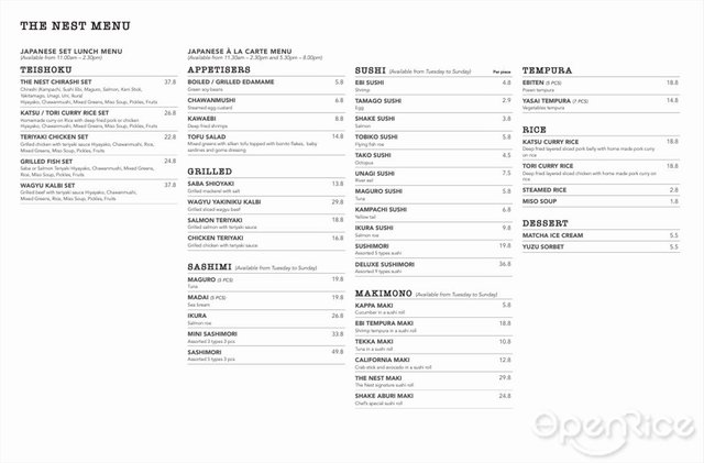The Nest (新加坡) 網址: https://s.openrice.com/eKbSB01obq000 地址: Laguna National Golf & Country Club, 11 Laguna Golf Green, East Coast, Singapore 電話: +65 6248 1711