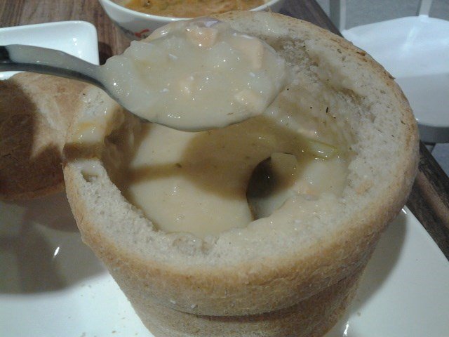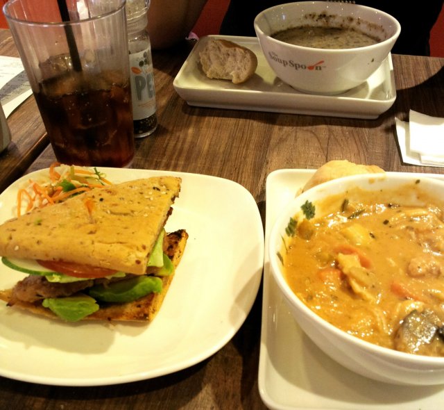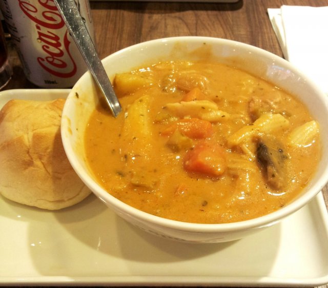 Wanted to pamper myself with some really nice and healthy food from this Soup Spoon outlet at Tampines. The restaurant was quite small and squeezy, but the area surrounding is still quite cooling.Had bought the chicken mushroom wrap,which the wrap is quite thin and chewy, which is totally not oily. Inside is filled with generous amount of shredded cabbage, shredded chicken meat and sliced mushroom, super healthy and flavourful. The clam chowder is served in a thick whole meal bread bowl that is really filling and sufficient enough to have it as a main course. Paid $23 in total for this bill which is quite alright. …查看更多