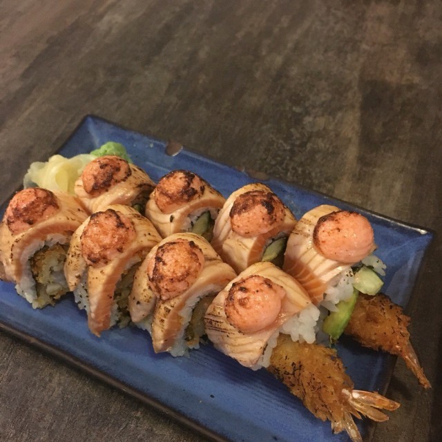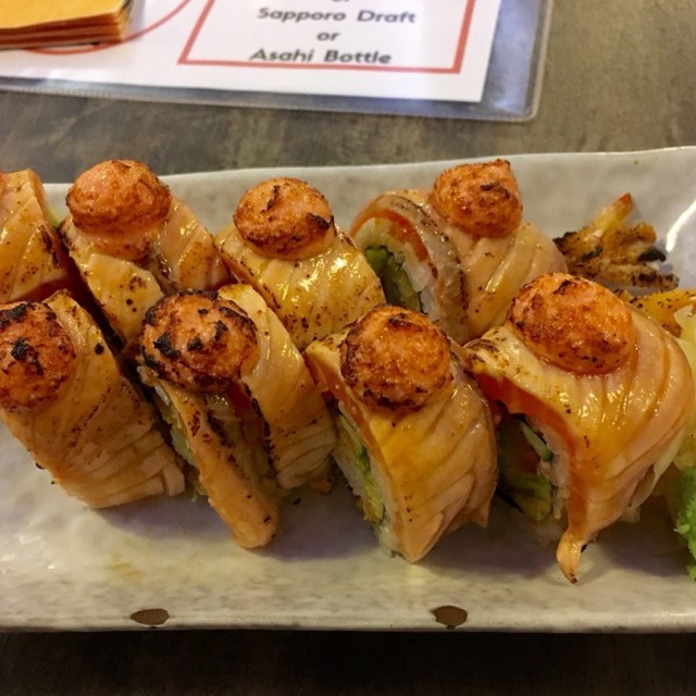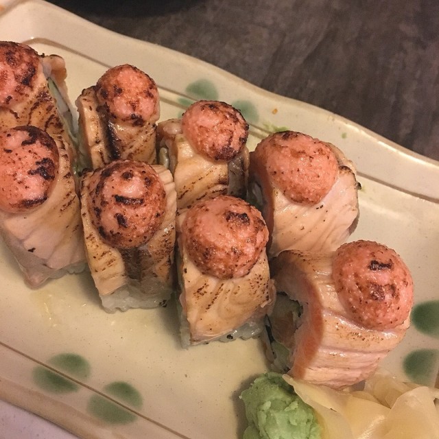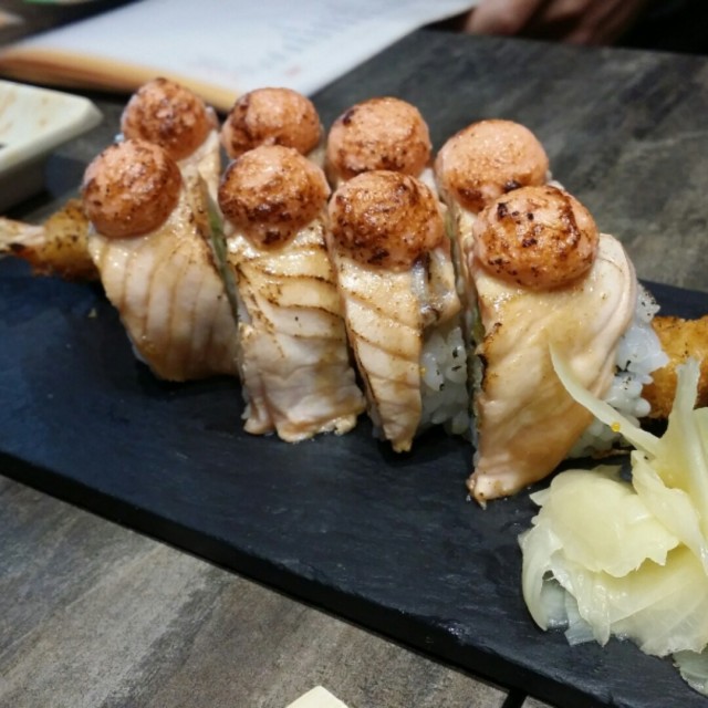 Aburi Salmon Maki Roll with Mentaiko sauce
