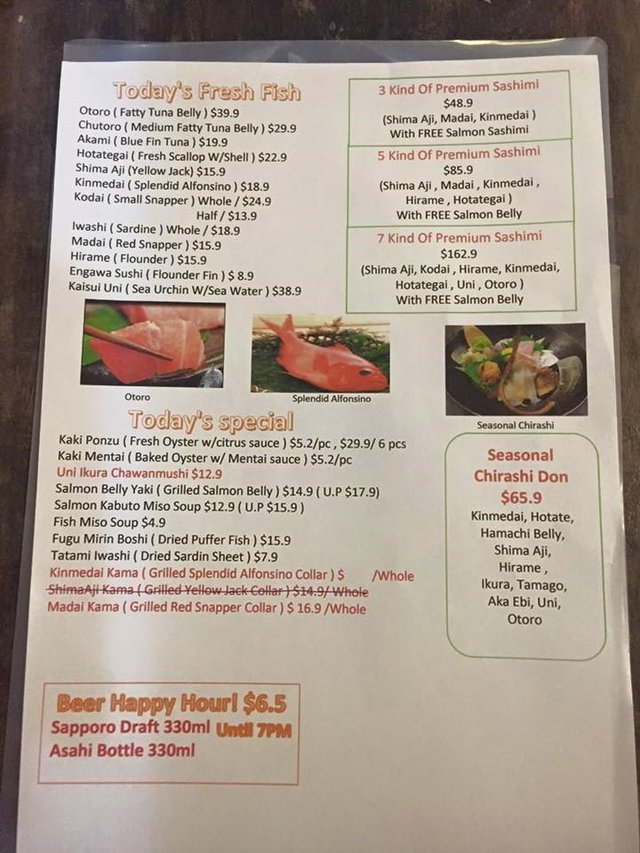 Contrary to the image, when the clock strikes 7pm, the snaking queue takes over to welcome you into their humble sushi bar! You will only get to see this side of The Sushi Bar before 7pm. If you do not wish to queue, it is highly advisable for you not to just make 1 week of reservation in advance but at least 2 weeks in advance because they kind of kept a fixed number of tables available for reservations which is pretty small.Similar to what an authentic Japanese restaurant does, apart from the fixed menu, it usually comes with another Daily/Catch of the Day Menu stating what are the fresh catches from the sea they have on that day itself. These Sashimi usually come at a much higher price due to its freshness and some being seasonal too.First appetizer to kick start the dinner is none other than the traditional Chawanmushi ($2.80). I guess it’s kind of hard to come across awful tasting Chawanmushi since it’s such an easy to make dish, and nothing too fanciful is needed to give it the finishing touch. But what makes this dish stands out the most it’s the smooth and silky egg with a touch of light seafood flavor to it.Next up was the Scallop Mentaiyaki ($13.90). Thinly sliced fresh scallop which are light in taste paired with the creamy mentaiyaki sauce and tiny fish roes under the quick glaze of fire brings the flavor to another height. It was simple yet an impressive dish.First gem of the restaurant is their Chirashidon. We went for their Normal chirashi-don ($24.90) which consists of 3 thick slices of each sashimi that were full of lustre – Salmon, Aburi Salmon, Tuna, Swordfish, Yellowtail and Scallop topped with Ikura (salmon roe). The cut of fish falls between common and something more premium. They are selfless in their ingredients, each slice of fish is that thick, fresh and succulent with the Swordfish having the extra bite in particular. Their generosity of sashimi has definitely surpass the proportion with the rice and way exceed my expectations for the price i’m paying for.Second gem of the night that we couldn’t miss was this Salmon Aburi Roll ($14.90). I love how the taste and texture of each ingredient has complement one another. The crunchy crispy battered prawn with buttery avocado wrapped around with sweet japanese sushi rice and half grilled salmon aburi goodness that literally melts in your mouth. It’s such a delicate delicacy.The Sushi Bar definitely makes a good place to satisfy your japanese cravings at pocket friendly price yet not comprising on the quality in the food served. Despite the crowd, attentive and prompt service was rendered to us while we were there too. Highly recommended place!https://poohlovesfood.wordpress.com/2015/07/11/the-sushi-bar/…查看更多