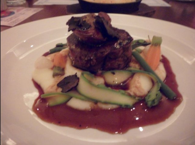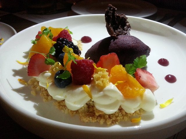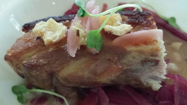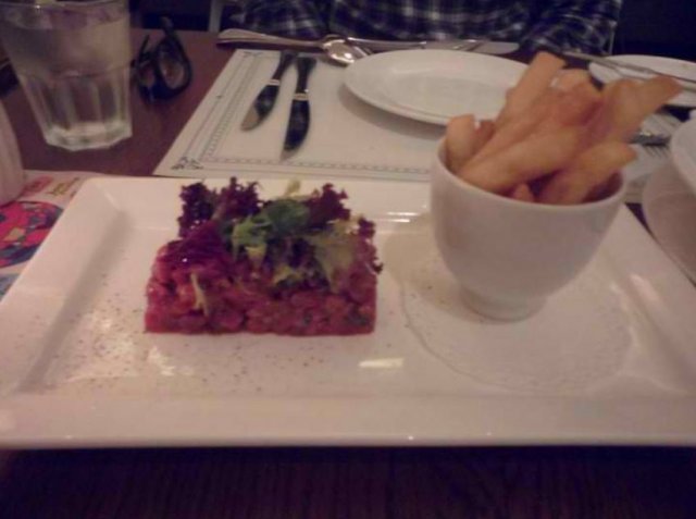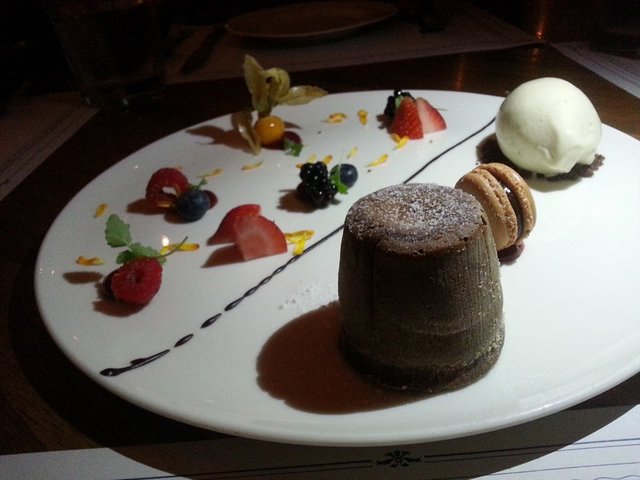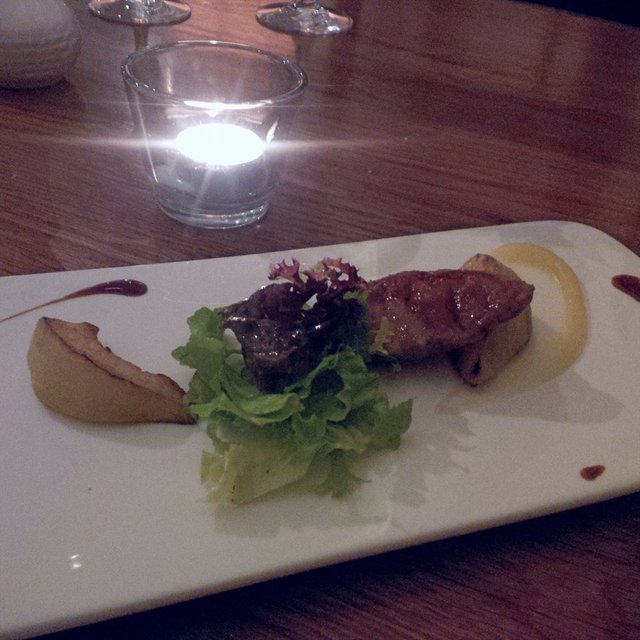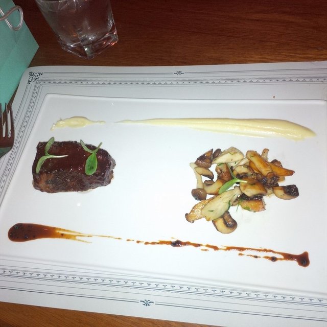 an-Seared Foie GrasSet on top of quince puree and roasted pear, the foie gras was pan-seared to salty. It was a little too salty for me. It was a good texture on the inside, but seemed a little charred on the outside.36-Hour Brandt ShortribsWhen I ordered this dish, I was told that they don't have shortribs, only the beef's rump cut. When it was served, it was saltier because of the truffle miso glaze. I also felt that the field mushrooms were salty, which I felt was unneccessary.I did like the rump cut nevertheless (super meat lover talking), and the rump cut was pretty well cooked.Chocolate FondantThe presentation was lacking, but overlooking that, I went straight to cut into the chocolatey cake, which was supposed to contain a molten caramel core. Nope, nothing flowed out. In fact, the chocolate had been hardened, nothing flowed out except for some oil. It wasn't a pretty sight, and I was utterly disappointed. The banana and rum icecream was also without oomph. This dessert failed badly.My colleague's orders:Ranger's Valley Wagyu Carpaccio (Starters)Topped with shaved parmesan, celery cress, balsamic pearls and thin truffle slices, the truffle slices was the winning factor for this dish, but I had wished the truffle flavour would have been more apparent.Chicken Roulade (Mains)This dish was not bad, set on barley and topped with (supposedly) crispy kale. The kale was not crispy, if it was, this dish would have been much better. By the time it was served, the kale had turned chewy. This was the failing factor for me.Alaskan King Crab Tagliatelle (Mains - no photo, sorry!)Salty. I tried the pasta as well, it wasn't as impressive as it sounds. Contains Alaskan King Crab meat, cooked in pork broth and kombu.Sauteed Japanese Seabream (Mains - no photo, sorry!)Tender fish meat, set on top of creamed leeks, smoked mussels. My colleague enjoyed his seabream.Fresh Fruit Melange (Dessert)The grapefruit shaved ice tasted like orange cordial, over shaved ice. Did I also mention the shaved ice was coarse shaved ice? It was served on top of a dark chocolate bowl.Lemon Meringue Tart (Dessert)While the lemon meringue, topped with fruit bits, had tasted nice, the chocolate pastry it was set on was very hard and not a pleasant combination. Also on the plate, bland tasting acacia honey ice-cream.I waited at least 10 minutes per dish to be served, and it was clear that the kitchen and the floor servers had messed up the orders, making the wait very very long. We were quite unhappy as we were running out of time to go back to the office. Overall, it is not a place I would specially return to eat, especially with such a price, long waiting hours and a confused kitchen crew.Low-DownThe best bit:The bread and butter, as well as the dining surroundings (well, this is pretty pathetic, isn't it?!)The worse bit: The super long wait for the food. The average tasting food.…查看更多