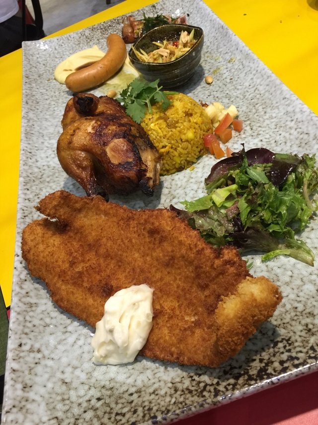 For more details, please visit http://www.foodesteem.com/2015/08/three-by-table-concepts-seiro-zakka.htmlSeletar Mall has quite a number of eateries, but I decided to head for Three by Table Concepts, as it looks pretty promising in serving some decent food and I'm quite interested to know what kind of menu they could serve by combining three different cuisines (Japanese Casual Dining, Modern Thai, French Bistro) into one.Not really combining all three cuisines into a food kind, but serving three separate cuisines in a menu. Somehow you may also put it as lessening your effort to run around three different places to try each.Ordered an appetizer, Crispy Prawn Toast ($7.80) served with 3 pieces. It’s a cuisine under Zakka (Modern Thai), where toast is served with fried prawn paste on it, and a Thai spicy sweet sauce to company.It isn't a fantastic appetizer, but it is pretty oily at the bottom, and the spread of prawn paste is just a mere layer. Taste is alright, and if dipped with the spicy sweet sauce, it would be more enjoyable as the sweetness of the sauce engulfs your taste bud.Chicken in Half ($13.80) is a French Bistro, where a country side roasted half chicken is served with roasted vegetables, such as carrots and broccoli, as well as french fries and mushroom cream sauce.I find the aroma of the roasted chicken well-presented and chicken meat is tender enough. Well, I would also say the chicken itself does make up for the creamy sauce and skinny fries.Signature Duck Leg and Linguine ($23.80) is also under French Bistro. Linguine has a little spicy sauce and if you look carefully, you will see chopped chili skins. Duck leg although has been flattened, but skin is crispy and meat is quite satisfactory too. Overall, I favor more of the Signature Duck Leg than the Chicken in Half, in terms of the overall taste.A modern Thai cuisine for our dessert, a Thai Mango Sticky Rice ($6.80). What makes me like the dessert is the real sweet mango which even the color is fresh-yellow. Four bunches of sticky rice that is really warm and even without the coconut milk, the rice itself is not bland at all. I would seriously add this as my favorite place to have my mango sticky rice in future.For more details, please visit http://www.foodesteem.com/2015/08/three-by-table-concepts-seiro-zakka.html…查看更多