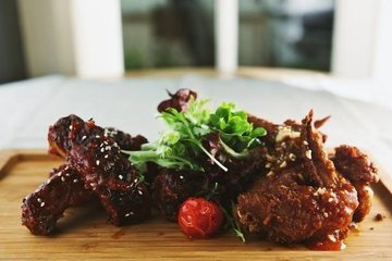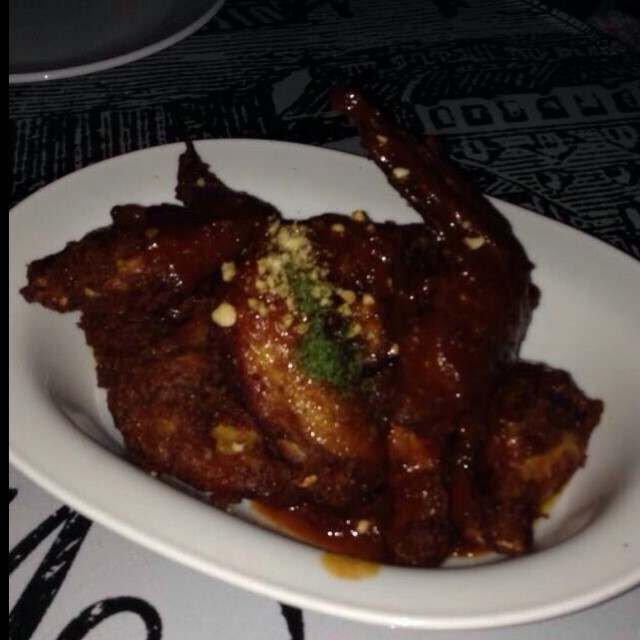 Timbe has a number of outlets in Singapore, but this outlet is interestingly hidden from the main road. One has to walk through the back alley to get into it. It has an open air concept with a laid back look. There is live band in this place at selected timing. The food menu in a single board offers tapas, pasta and pizza dishes.Crispy Pork Belly ($16)Slices of pork belly baked till charred and crispy. Served with caramel vinegarThe pork belly tastes sweet and crispy with a melt in the mouth fat. Super sinful.Salmon Scotch Eggs ($12)Soft-boiled eggs coated with salmon mousse, breaded and shallow fried. Served with smoked salmon and bell pepper salsa.The salmon mousse looks more like canned salmon to me. The egg dish is a bit too dry and quite filling too. I could not make myself to take more than half scotch egg.The Half & Half THIN CRUST PIZZA ($22)The best of both worlds. Choose two flavours from pizza selection and create your own. One half is Roasted Duck, where Roasted duck breast, sauté shiitake mushrooms with hoisin sauce, topped with crispy popiah skin and mozzarella cheese. The other half is Timbre Seafood, where Prawns, mussels and squid with sliced chillies on a tomato pomodoro base and topped with mozzarella cheese.The roasted duck pizza is quite delicious with lots of crispy skin on top. The seafood pizza is quite average on the other hand. The thin crust pizza is very thin and crispy.Overall the food is average, but served quite quickly. Service is not bad with staffs moving about, asking if we need additional orders. The place is quite relaxing and enjoying with live music around. The only disappointing thing about the place is its 2 restrooms which are unisex and quite dirty.…查看更多