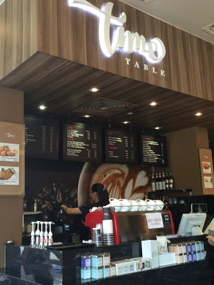 Anyway, Time Table Cafe was the most spacious looking one with the poshiest decor in comparison to the other joints here, hence we decided to grab our pre-dinner coffee here. I loved the black, white and silver decor magnified by the presence of mirrors, as well as the comfortable leather seats.*V chose an Affogato (SGD$7.40) - shot of espresso with a huge scoop of ice-cream. She went for pistachio flavour. The ice cream was creamy but not too rich, hence retaining the distinctive flavour of pistachio. It paired off rather well with the aromatic coffeeI had a Chocolate Cookies Latte (SGD$5.80) that was prettily decorated, as is the trend these days. The coffee contained strong hints of berries and a little sour overture, but was sweetened beautifully by the chocolate cookies.The service was good and there was free wi-fi for all, making it a perfect chillout or work cafe. What's best is that they currently have this "2nd cup at 50%" promotion! So, say, if I finish my Chocolate Chips Latte and wish to try their Affogato, I bring my empty cup back to the counter, pay SGD$3.70, and get to enjoy another delicious cup of hot beverage.For full review and more detailed information, please feel free to refer to:http://thearcticstar.blogspot.sg/2015/05/coffee-break-at-time-table-cafe-east.html…查看更多