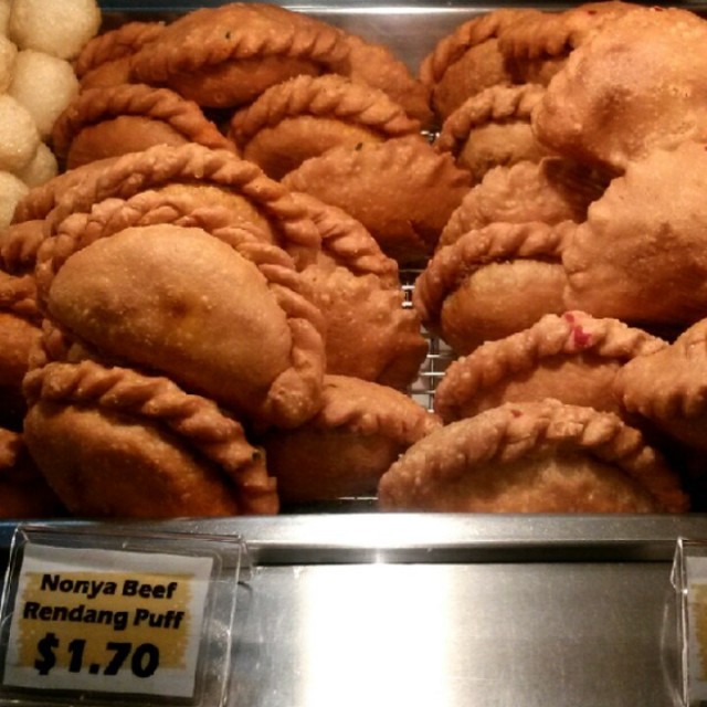 I happened to be at the basement of Raffles Place this morning. As I was walking towards Cold Storage, I bumped into the Tip Top Puff Factory which was a stone throw away from the supermarket.Heard so much about their famous Nyonya Beef Rendang Puffs.Priced at $1.70.I can easily take 2 pieces each time. Without hesitation, I decided to purchase a few pieces.From a humble beginning, a kopitiam stall in Ang Mo Kio  that sells only curry puffs back in 1979.The iconic flavour of their curry puff became a well known name.A franchise of ABR Holdings Limited that managed Swensens and Gloria Cofee.Famous for crunchy crusted curry and sardine puffs and recently in 2014 new puff made of beef Rendang.Currently, the most popular item from Tip Top is the Nyonya Beef Rendang.Each puff filled with generous amount of beef well marinated with aromatic spices.The filling is soft with a subtle sweetness unlike other curry puffs. If you happen to by pass any of their outlets, do not miss their "Nyony Beef Rendang Puffs".查看更多