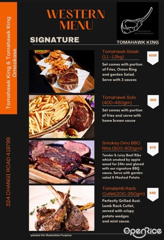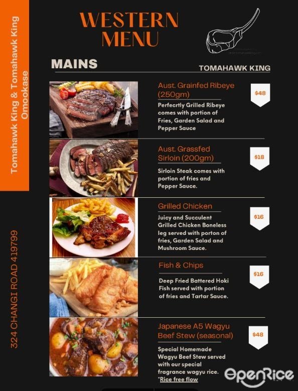 Tomahawk King: Steakhouse and Grill (新加坡) 網址: https://s.openrice.com/eKbSB01eH8300 地址: 324 Changi Rd, Singapore 419799, Kembangan, Singapore 電話: +65 8031 4122