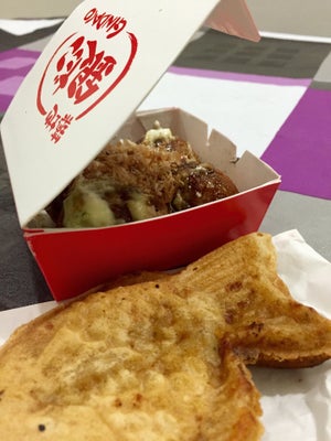 My friend and I are walking around Raffles City when we spotted this small stall opposite Cedele. It sells takoyaki and taiyaki and being taiyaki lovers, we decided to get a taiyaki each. There are savoury fillings like ham and cheese and sweet fillings like custard and red bean. I got the red bean pancake which costs $1.80. My friend got the custard which is also priced at $1.80. As there are already spare taiyakis made beforehand, we got our taiyakis immediately. The taiyaki is already cooled, but the exterior is still rather crispy. The pancake is comparatively thinner and this will make a light snack as it does not occupy too much stomach space. I quite like the red bean filling as it is moist and not too overly sweet. That said, I would prefer Tai Parfait’s taiyaki over this.…查看更多