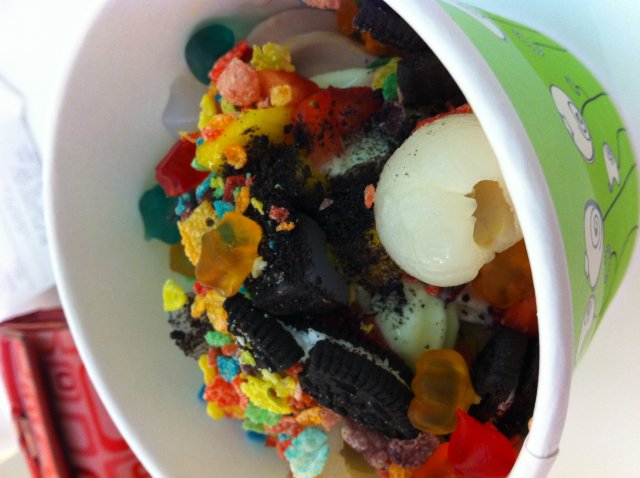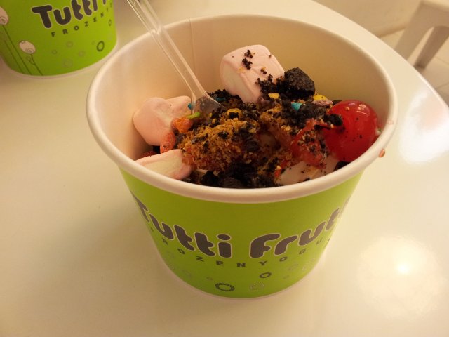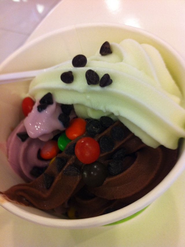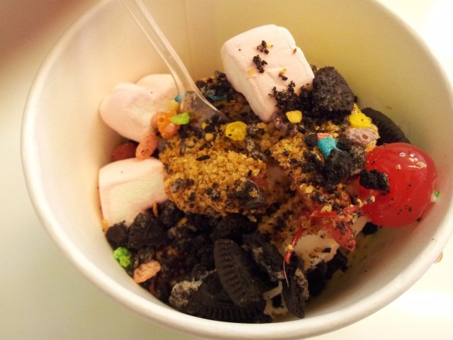 (Right) Death by chocolate flavoured yoghurt $5 with assorted toppings such as mini marshmallows and nata de coco. The nata de coco was rather chewy and its plainer flavour went well with the heavier flavour of the chocolate yoghurt. The chocolate yoghurt was creamy and smooth and tasted just like the healthier version of ice-cream. It was a great snack on a hot day!…查看更多