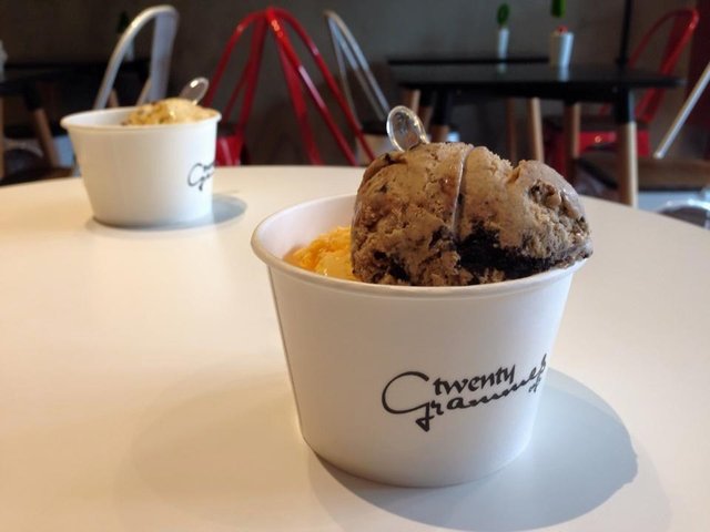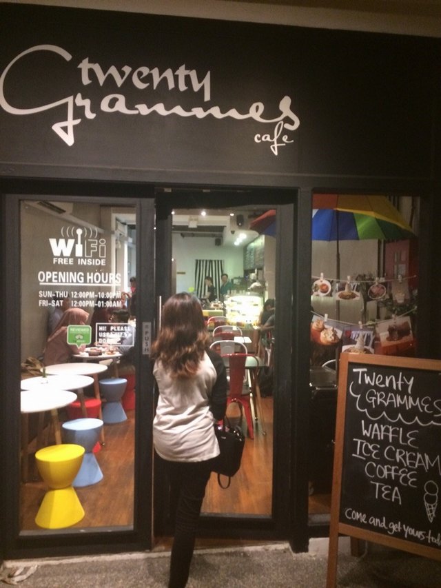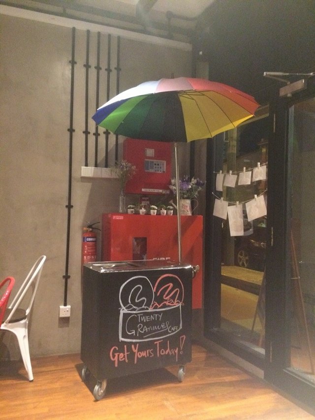 Located along the busy street of North Bridge Road with countless hipster cafes is twenty grammes.It is very cheerfully decorated with fun props like this little ice cream stand.The dining area is very casual with simple colours that gives you a very cosy and homely feel. The water and utensils are at the back, near the magazine table. There's some magazines about fashion and photography to help you pass the time while waiting for your waffles.The bar counter top serves as an additional "shop sign".They have tons of flavours, don't be afraid to ask and try the flavours. It took us awhile to settle on 3C, honey butterscotch and chocolate.They have a wide variety of cakes to go with their coffee.1. Yuzu Lime cheesecake $7.90Instead of a typical sweet, oreo flavoured cheesecake, we took a yuzu lime cheesecake. Yuzu flavours are usually sour but this was enhanced with lime. The cheesecake was dense but not gerlat. Shared amongst 2, it tasted great.The bottom graham cracker crust was sweet and helped compliment the sour taste of the yuzu lime cheese layers.2. Ice cream with waffles (3C, Honey butterscotch, Chocolate)The waffles here are more for the fluffy waffle lover. The exterior is only slightly crispy, despite it's browning, it was very soft. No knife needed to cut up this waffle. The ice cream flavours went well together. 3C being my favourite. The honey butterscotch was extremely sweet and you could only nimble bits of the ice cream at a time.…查看更多